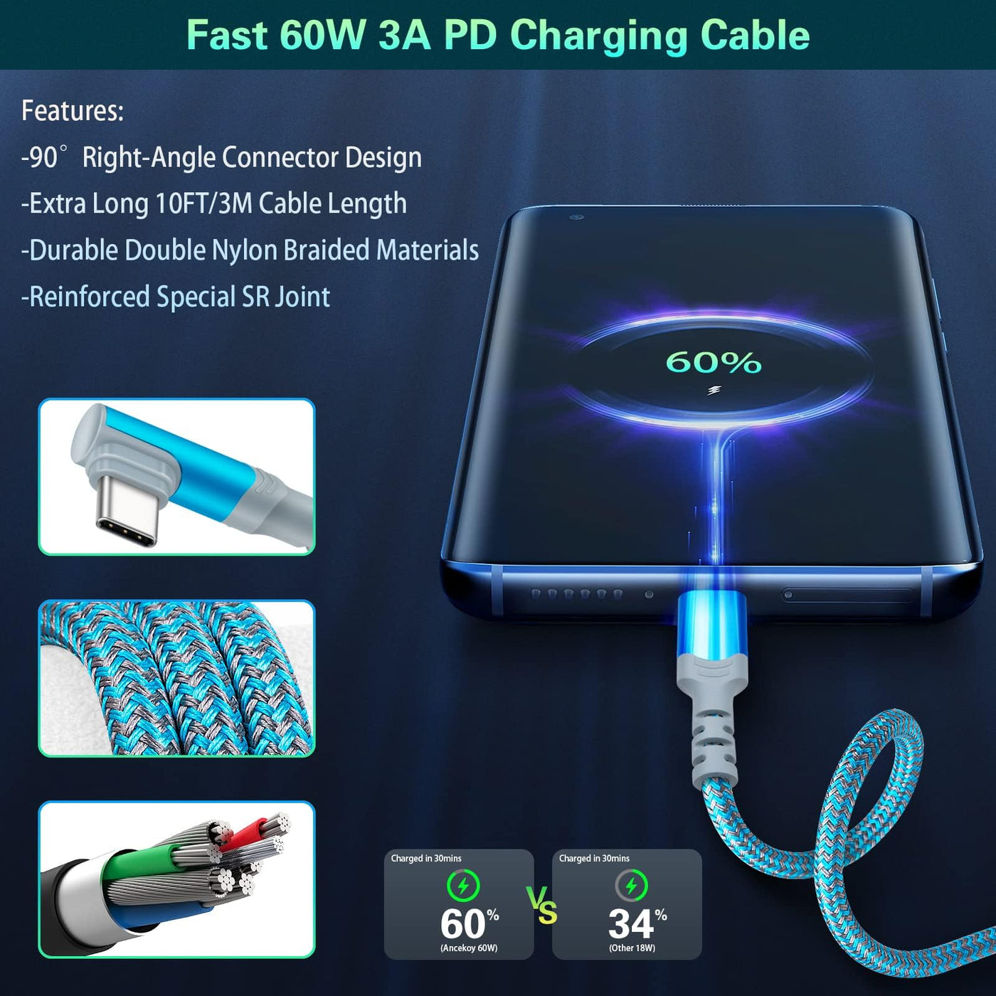20W Usb-C Fast Charger, Ancekoy 2-Pack Usb-C Power Adapter With 2X 10Ft Usb C To Usb C Charge Sync Cord