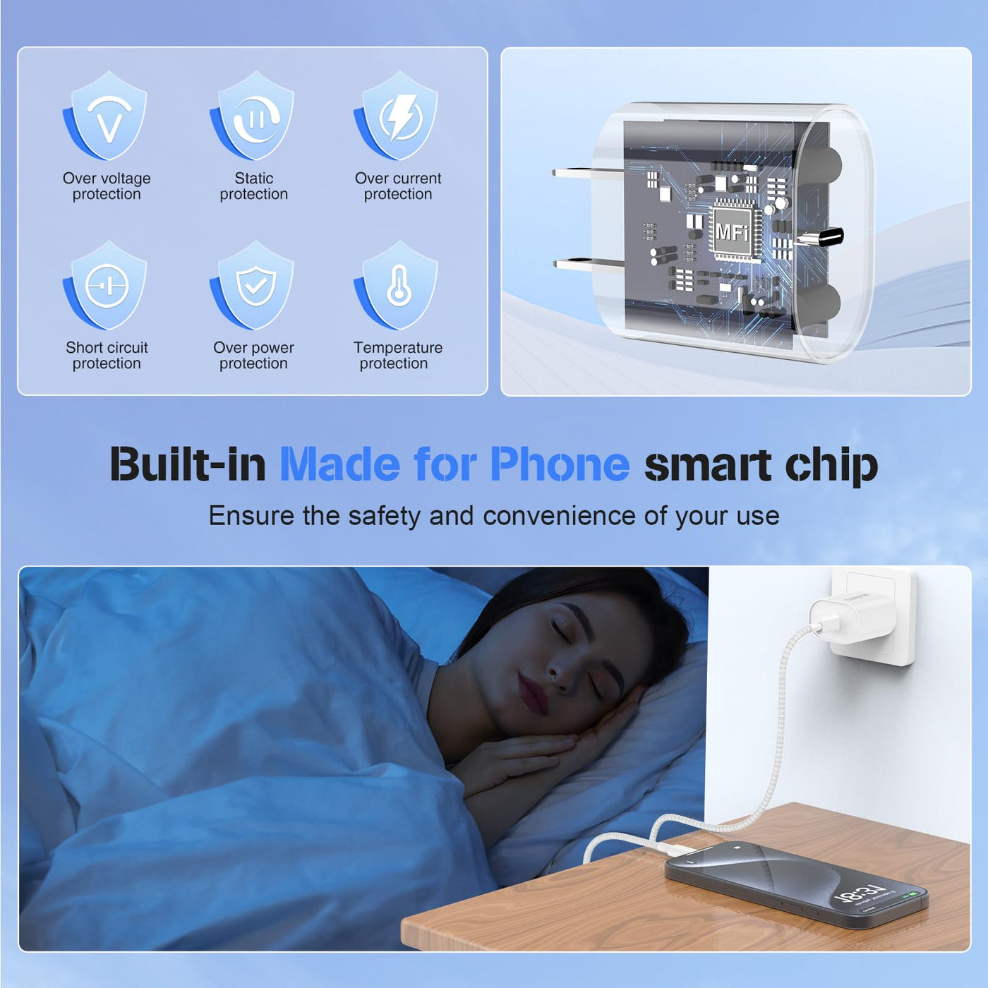 Q: Is this charger safe for my devices?A: Yes, the Fast Charging for iPhone 15 Pro Max Charger features built-in multiple protection systems that prevent overvoltage, overcharging, and overheating, ensuring safe and efficient charging for your devices.