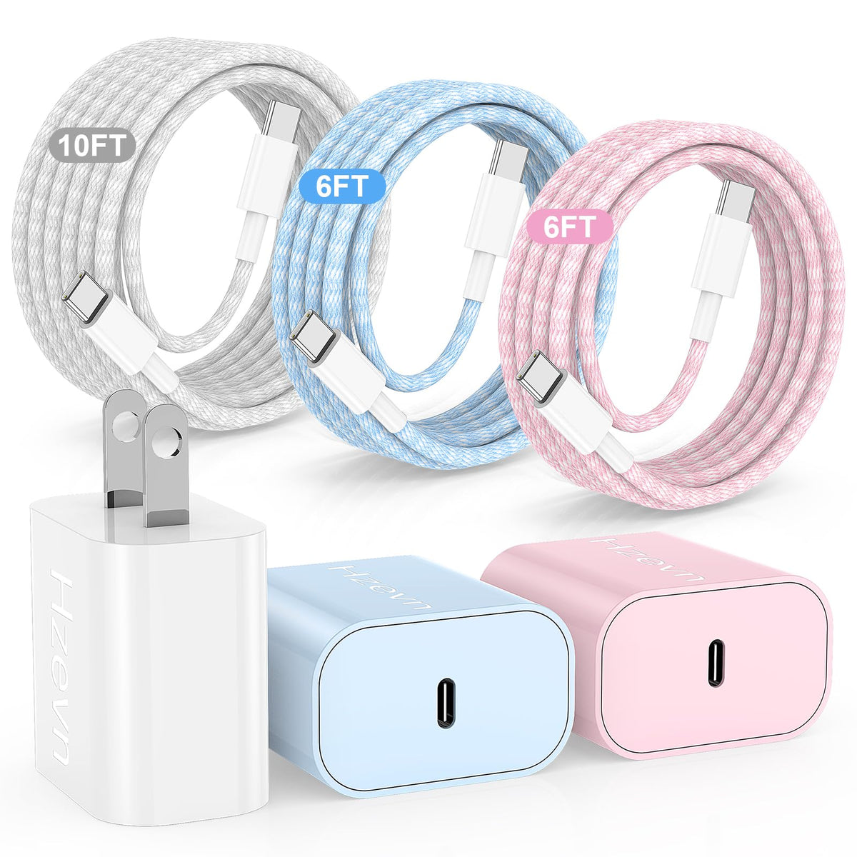 Fast Charging For Iphone 15 16 Pro Max Charger Colorful, 3Pack 20W Usb C Fast Chargers Block With 6/6/10Ft Long Usb C To Usb C B