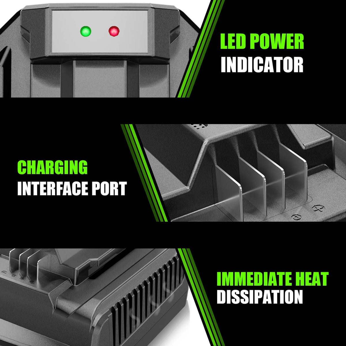Q: Is the charger safe for my EGO batteries?A: Yes, the charger is constructed with high-quality materials to ensure safe and reliable performance, designed to prolong the life of your EGO batteries.
