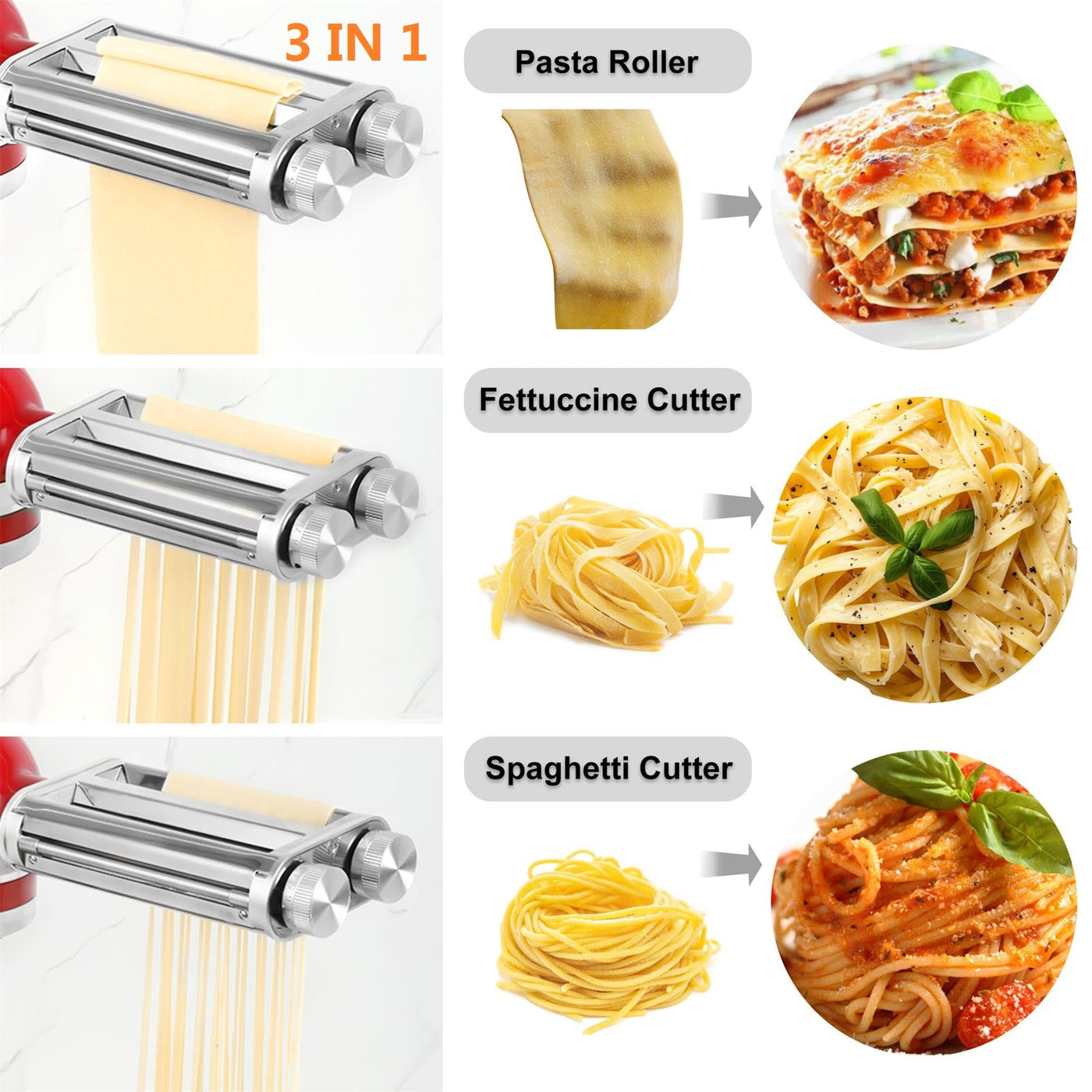 Favorkit Pasta Roller &Amp; Cutter Attachment&Nbsp;Set, Compatible For Kitchen Aid Stand Mixers, Service As Professional Pasta Maker.&Nbsp;Make Fresh Pasta Noodles In Minutes!Saving Kitchen Space: 3 In 1 Set Design, 1 Rolling Shaft, 1 Cutting Shaft To Control&Nbsp;Spaghetti Cutter&Nbsp;&Nbsp;&Amp; Fettuccine Cutter, Unique Design Cutters Make Whole Unit Only 1.33Kgeasy To Use,Easily Attach To Your Stand Mixer,Then Make Different Pasta:~ Pasta Sheet Roller Easily Roll 5.7-Inch Sheets Of Pasta With 8 Thickness Settings,Adjust To Your Desired Sheet Thickness. Help You Make Different Thickness Of Fresh Pasta, For Ravioli, Tortellini , Agnolotti, Dumplings, Empanada, Lasagna, Noodles...~&Nbsp;Spaghetti Cutter Cut Pasta Sheets Into Classic Spaghetti Noodles, Tagliolini~&Nbsp;Fettuccine Cutter&Nbsp;Cuts Pasta Sheets Into Hearty Fettuccine Noodles, Linguini~ Cleaning Brush&Nbsp;Included Help Clean Attachments~Attachment Knob Screw Help Fix Attachments Well On Kitchen Stand Mixerfood Grade Metal Construction&Nbsp;For Durable Long Lasting Performance And Healthier Pastacompatibilitythis Pasta Attachment Specially Designed Compatible For Kitchen Aid Stand Mixer, All Household Models.Also Fit Cuisinart Stand Mixer Only Models Sm-50, Sm-50Bc, Sm-50R.Clean&Nbsp;&Amp; Maintenance :&Nbsp;Not Dishwasher Safe!To Protect Product Specially The Precise Gears Inside, Do Not Wash Or Immerse In Water ! Also Not Put Into Dishwasher! Clean By Hand Or Cleaning Brush, Or Dry Soft Cloth. Store Them In A Dry Place At Room Temperature.Great Gift Choice:&Nbsp;A&Nbsp;Nice&Nbsp;Gift For Family And Friends&Nbsp;Who Already Have A Kitchen Ad Stand Mixer At Home! Whenever Mother'S Day, Father'S Day, Thanksgiving, Christmas, Or New Yearany Question On Product Use, Feel Free To Contact Us!