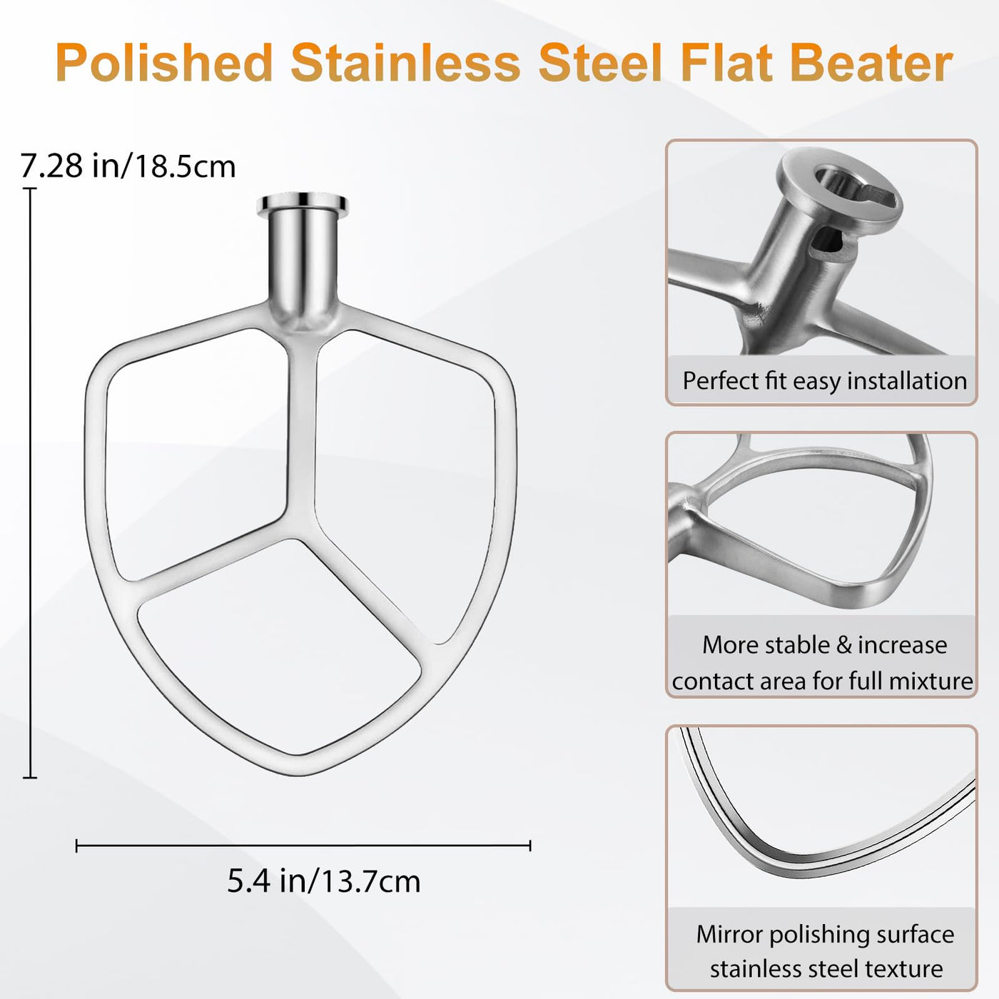 Sturdy & Built To Last: The Stainless Steel Paddle Attachment For Kitchenaid Mixer Made Of Premium Food Grade 304 Stainless Steel. Don'T Worry About The Problem Of Painting-Coating Cracking And Chipping Off From Coated Flat Beater, Ensuring A Healthier Mixture. | Fit Great: Paddle Attachment Is Designed For Kitchenaid 5 & 6-Quart Bowl-Lift Mixer, Fits Professional 5 Plus Series, Pro 500 Series, Professional 600 Series And Pro 600 Series, Before Purchase Check Your Kitchenaid Mixer Model. | More Stable & No Shaking: Flex Edge Beater'S Symmetrical Design Allows The Mixer To Stand Firm And Operate Soundly. The Safety Buckle And The Beater'S Circular Head And Structure Ensure Shake-Free Mixing. | Efficient Mixing Performance: The Flat Beater Can Continuously Beat, Scrapes And Mixes Ingredients Side And Bottom Ensure Mixing Is Done Thoroughly Without Scratching Your Mixing Bowl, Fast And Efficient. It Excels In A Full Range Of Mixing Applications, Compound Butter, Pie Pastry, Creamed Frostings And More. | Easy Clean: Handwash And Dishwasher All Are Okay, Make Cleanup A Breeze. If You Are Not Sure If This Flat Beater Matches Your Kitchenaid Mixer. Please Leave Your Questions On The Q&A Function, We Will Be Happy To Assist You. Feel Free To Contact Us If There Are Any Quality Issues.