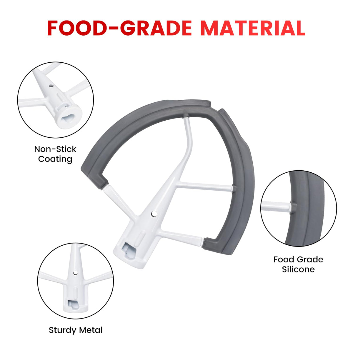 Q: What materials is the Flex Edge Beater made from?A: The Flex Edge Beater is crafted from high-quality materials, including durable silicone and sturdy components designed to withstand frequent use, ensuring long-lasting performance for all your baking needs.