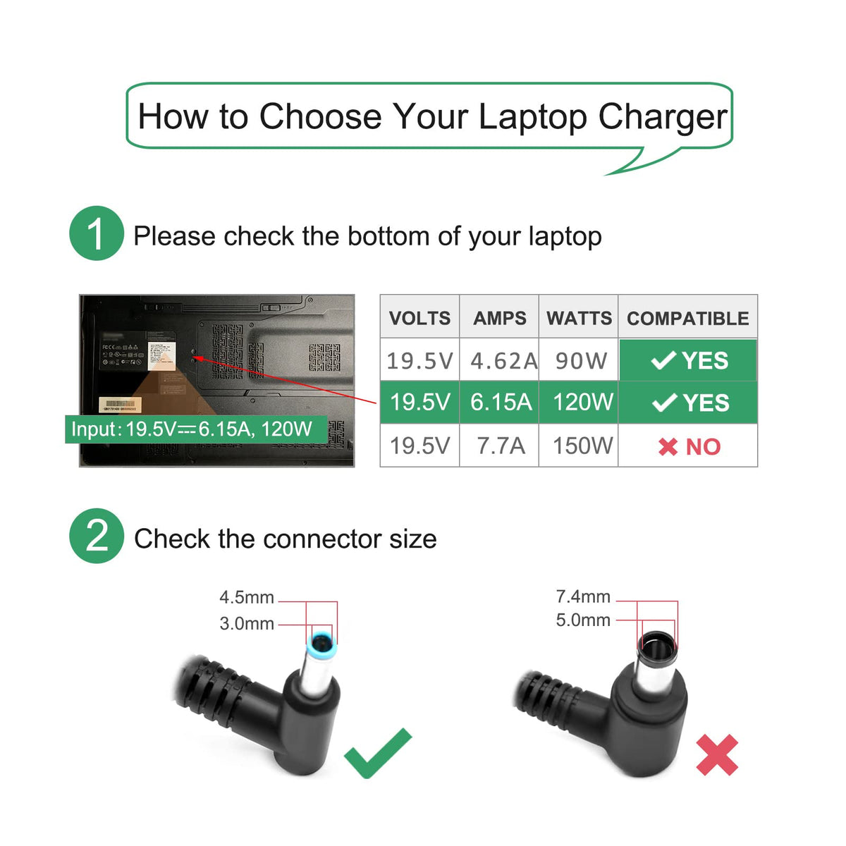 Connector Size: 4.5Mm*3.0Mm. Not 7.4Mm*5.0Mm. Please Check Your Laptop To Confirm The Size. Parcel Contents: 1 X 120W Charger, 1 X Us Power Cable.