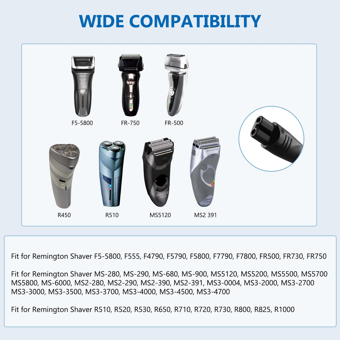Q: Is this charger compatible with my Remington shaver model?A: Yes, this 12V charger is compatible with various Remington shaver models including F5-5800, F5800, F7800, F5790, F4790, FR750, and many others. Please check the list in the product description to ensure compatibility with your specific model.