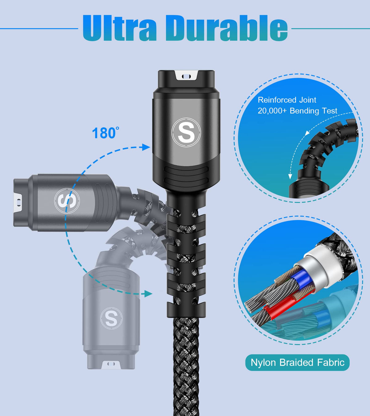 Q: What material is the charging cable made of?A: The Garmin Watch Charging Cable is encased with Triple-Braided Nylon fiber, providing excellent durability and resistance to twisting and abrasion.