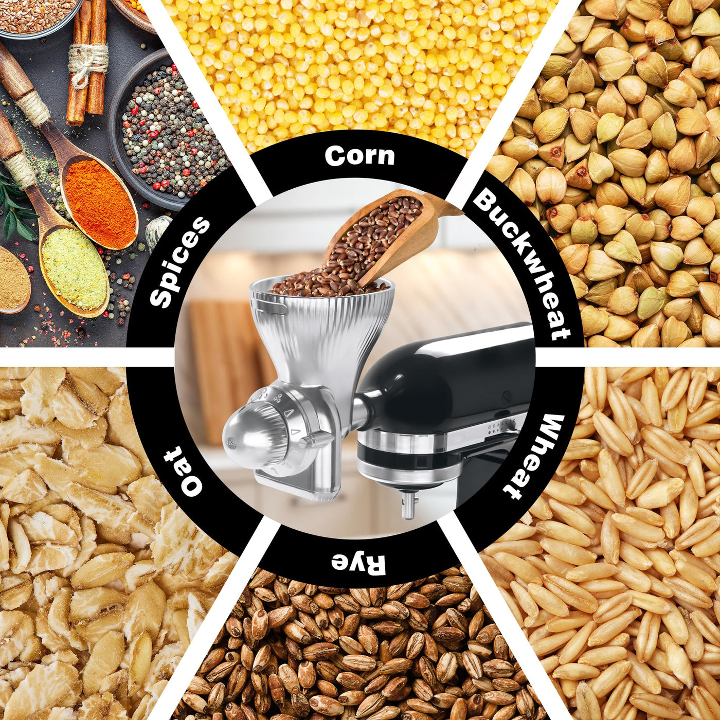 Glink All Metal Grain Mill Attachment Fit For Kitchenaid Stand Mixer,12 Levels Flour Grinder Accessories, Grain Mill Attachment Fit For Grinding Wheat, Corn, Oats, Buckwheat,Millet And Other Cereals