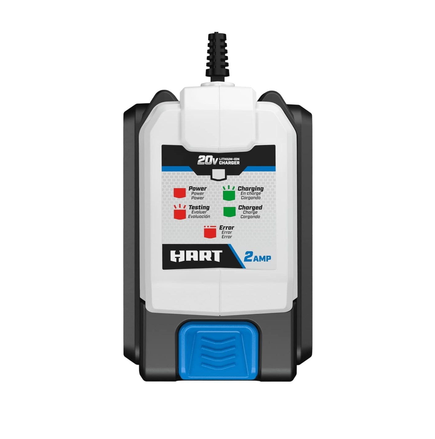 Hart Fast Charger 2 Amp The 20V 2Amp Fast Charger Is The Perfect Upgrade Or Addition To Any Diyers Hart Tool Collection. This Charger Operates At A Higher Amperage To Charge All Hart 20V Lithium-Ion Batteries Faster Than The.5 Amp Charger That Is Included In Many Tool Combo Kits. The 2Amp Fast Charger Will Charge Any Hart 20V Lithium-Ion Battery At 3X The Rate Of The Standard 0,5 Amp Charger. If You Already Have A Collection Of Hart Tools This Charger Will Be An Excellent Upgrade To Get Your Batteries Charged Quicker To Get You Back On The Road To Completing Your Projects. If You Do Not Currently Have Any Hart Tools, Then This Charger Is An Excellent Way To Start Off With The Best Charger For All Of Your Hart Batteries Allowing You To Grow Your Collection Even Quicker. This Charger Is Being Sold As ''Tool Only'' Meaning A Battery Is Not Including With This Tool.
