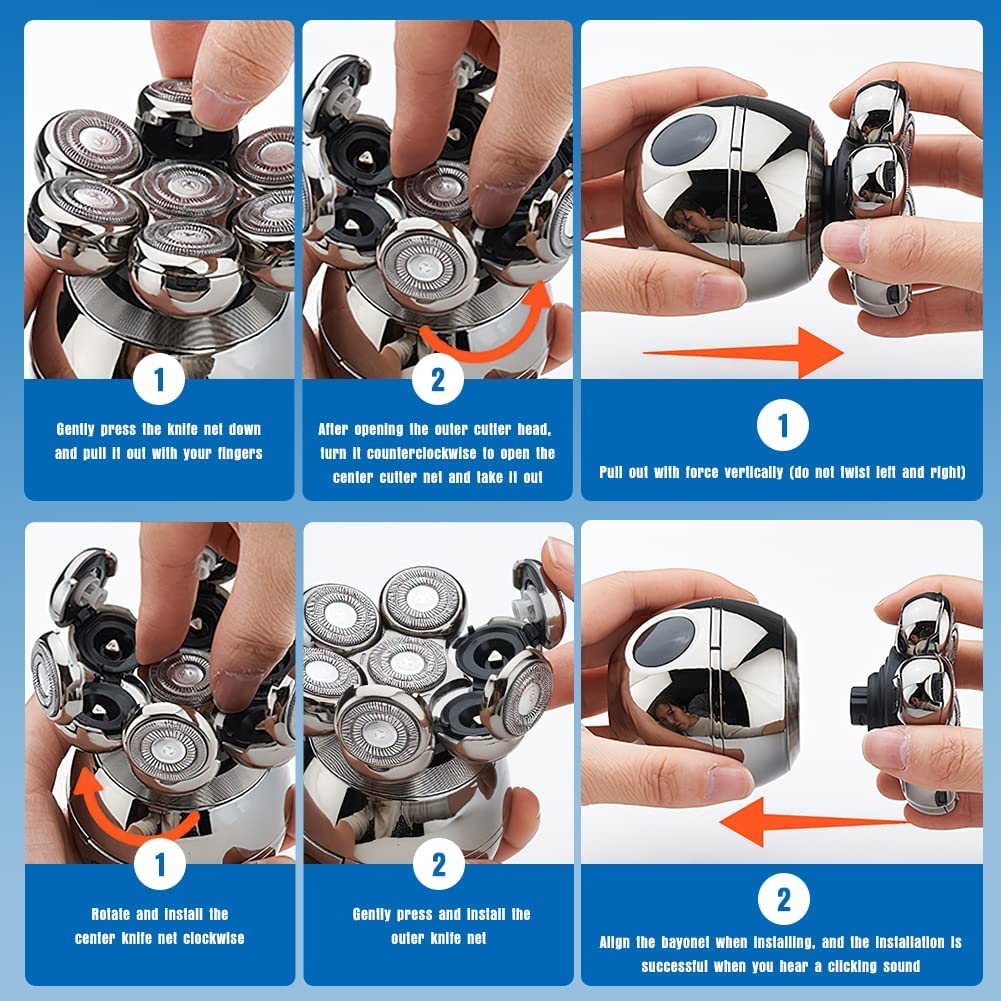 Head Shavers For Bald Men, Wjiang 6 In 1 Electric Razor Mens Shaver Wet Dry Cordless Electric Skull Shavers 7D Floating Recharge