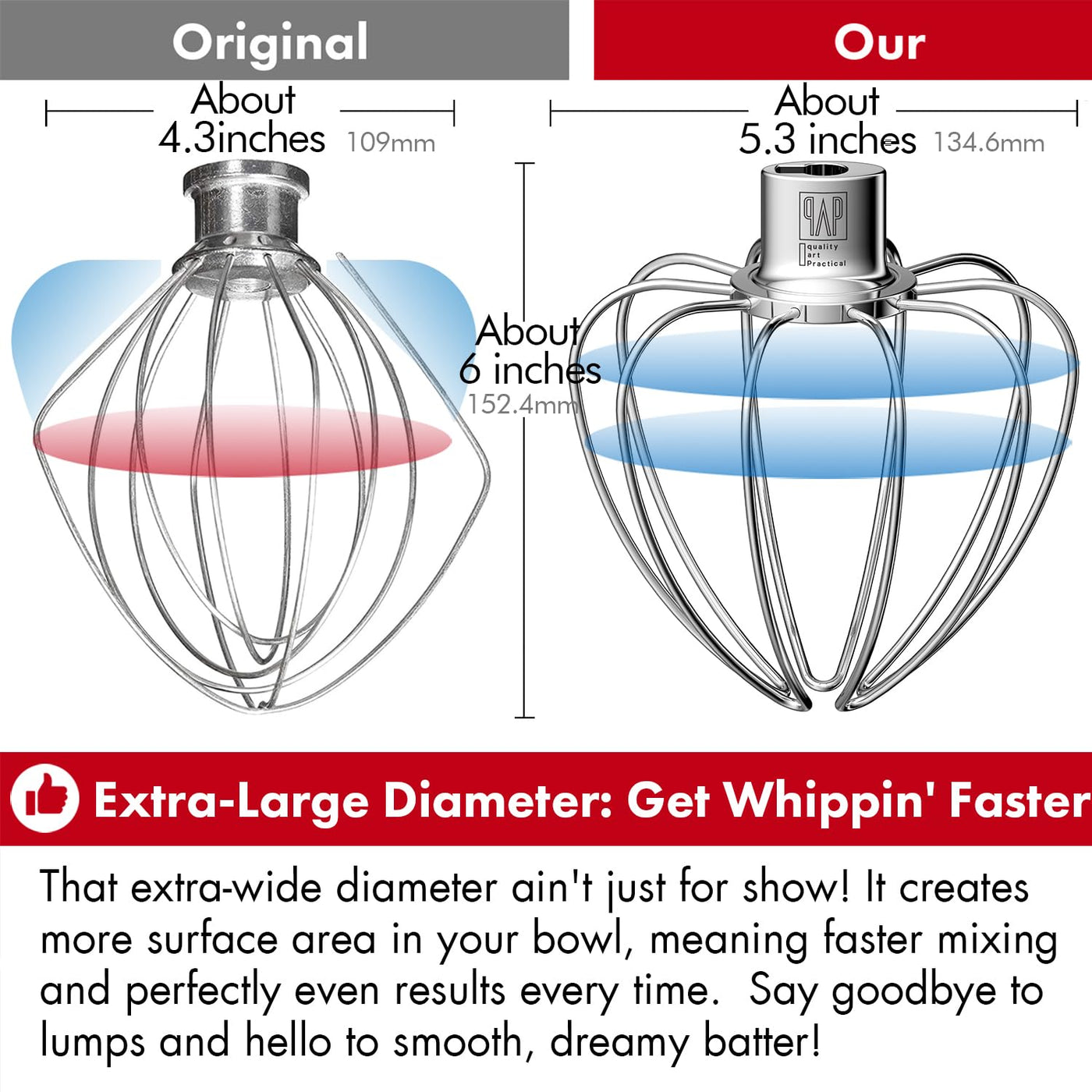 Heavy Duty Whisk Attachment For Kitchenaid 4.5 5Qt Tilt Head Stand Mixers Extra Thick Stainless Steel Wire Whip For Fast Whippi