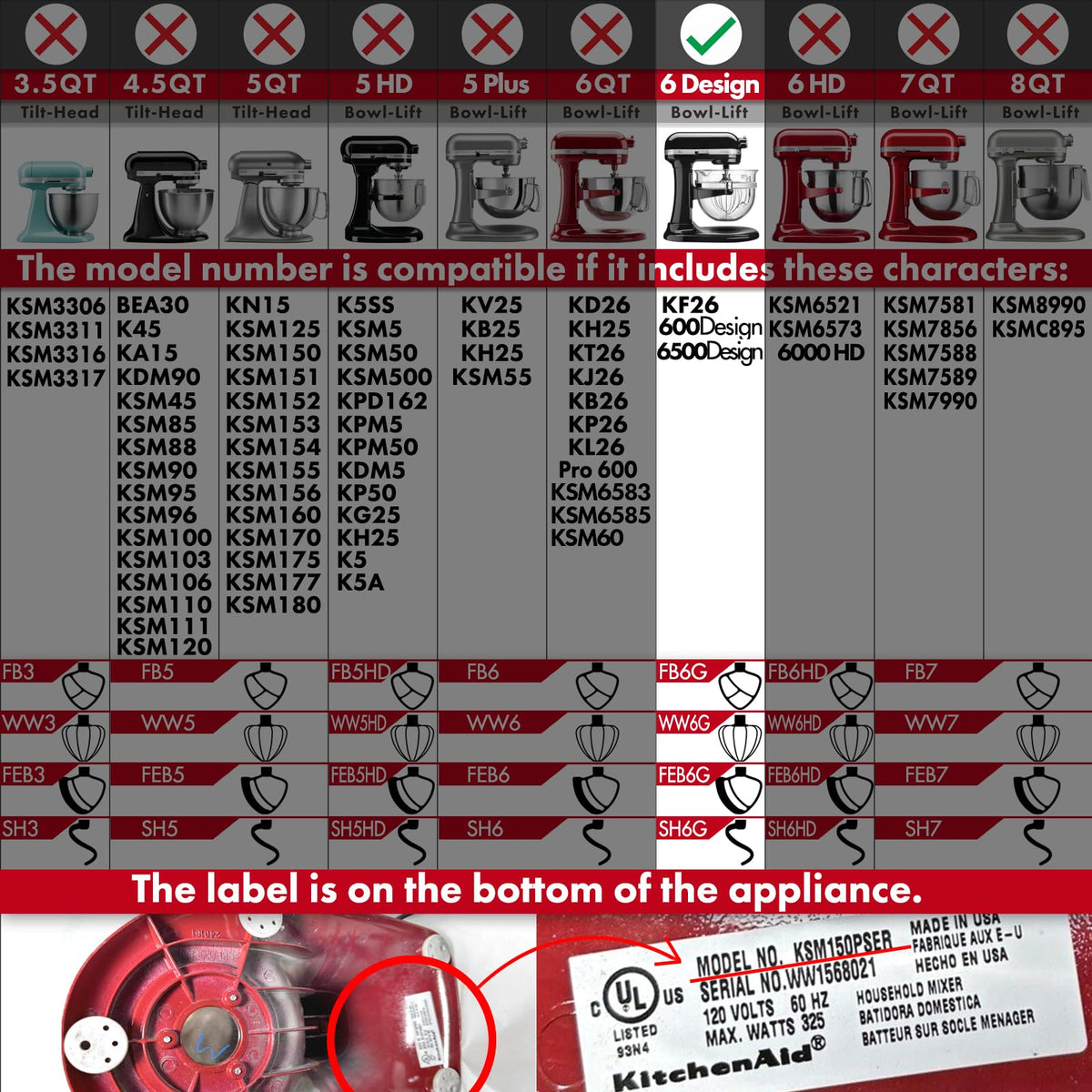 Q: What type of mixers is the Heavy Duty Whisk Attachment compatible with?A: The Heavy Duty Whisk Attachment is specifically designed for KitchenAid Bowl-Lift Stand Mixers, including model numbers KF26, 600Design, and 6500Design.