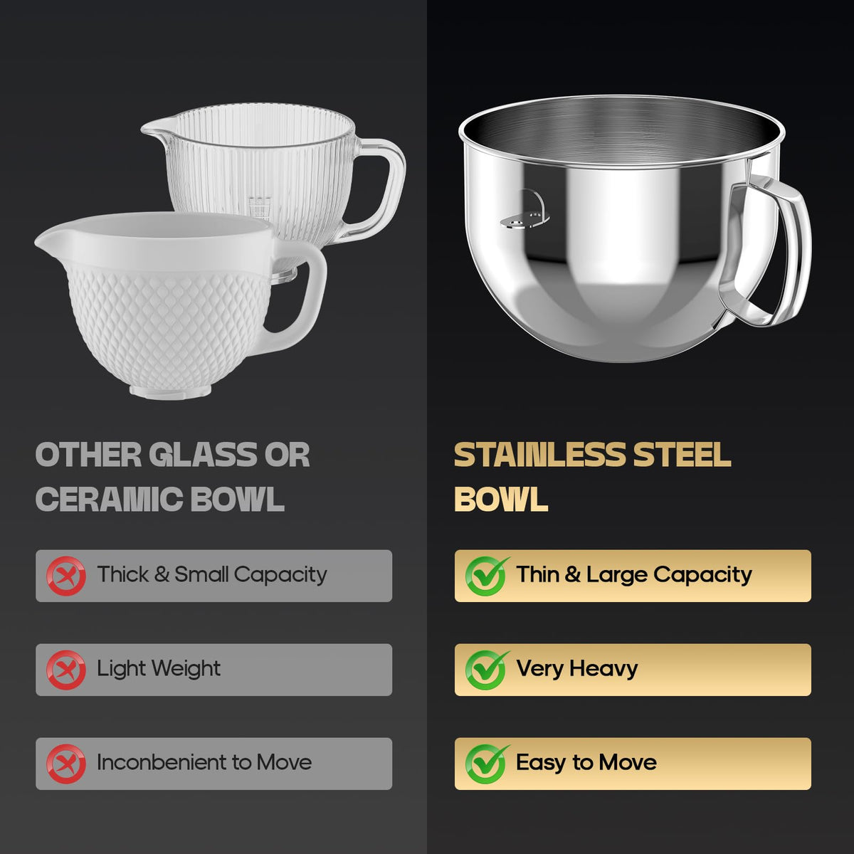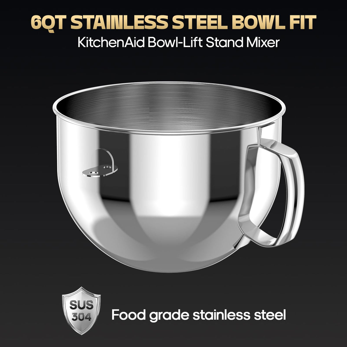 Hozodo Stainless Steel Bowl For Kitchenaid, Fits 6Q Bowl Lift Stand Mixer For Kitchen Aid Bowl, Stainless Steel Kitchenaid Attac