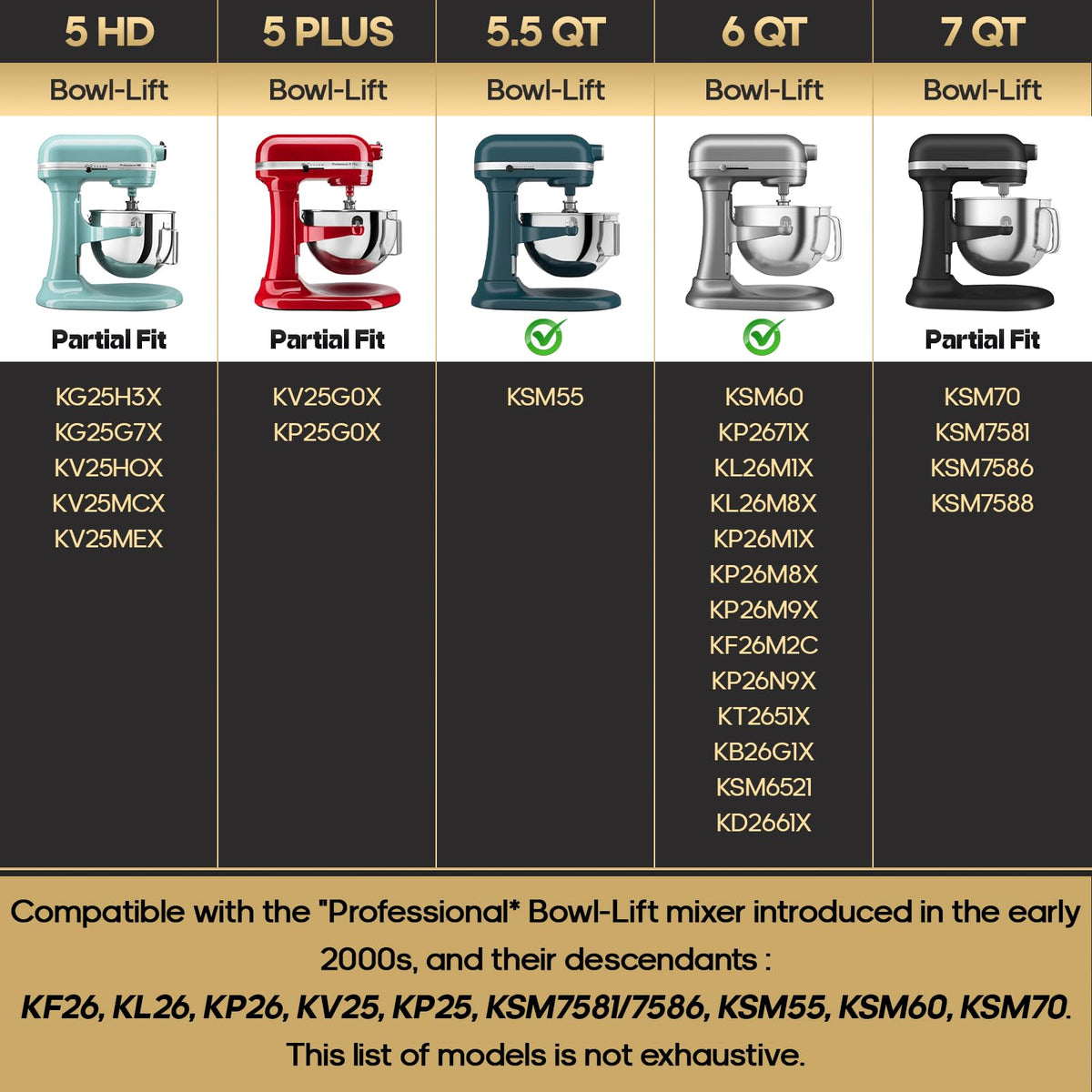 Q: Is the HOZODO Stainless Steel Bowl compatible with all KitchenAid mixers?A: The HOZODO Stainless Steel Bowl is specifically designed to fit 6QT Bowl-Lift Stand Mixers, including models such as KV25MEX, KSM60, KT2651X, and several others. Please ensure your mixer model is compatible before purchase.