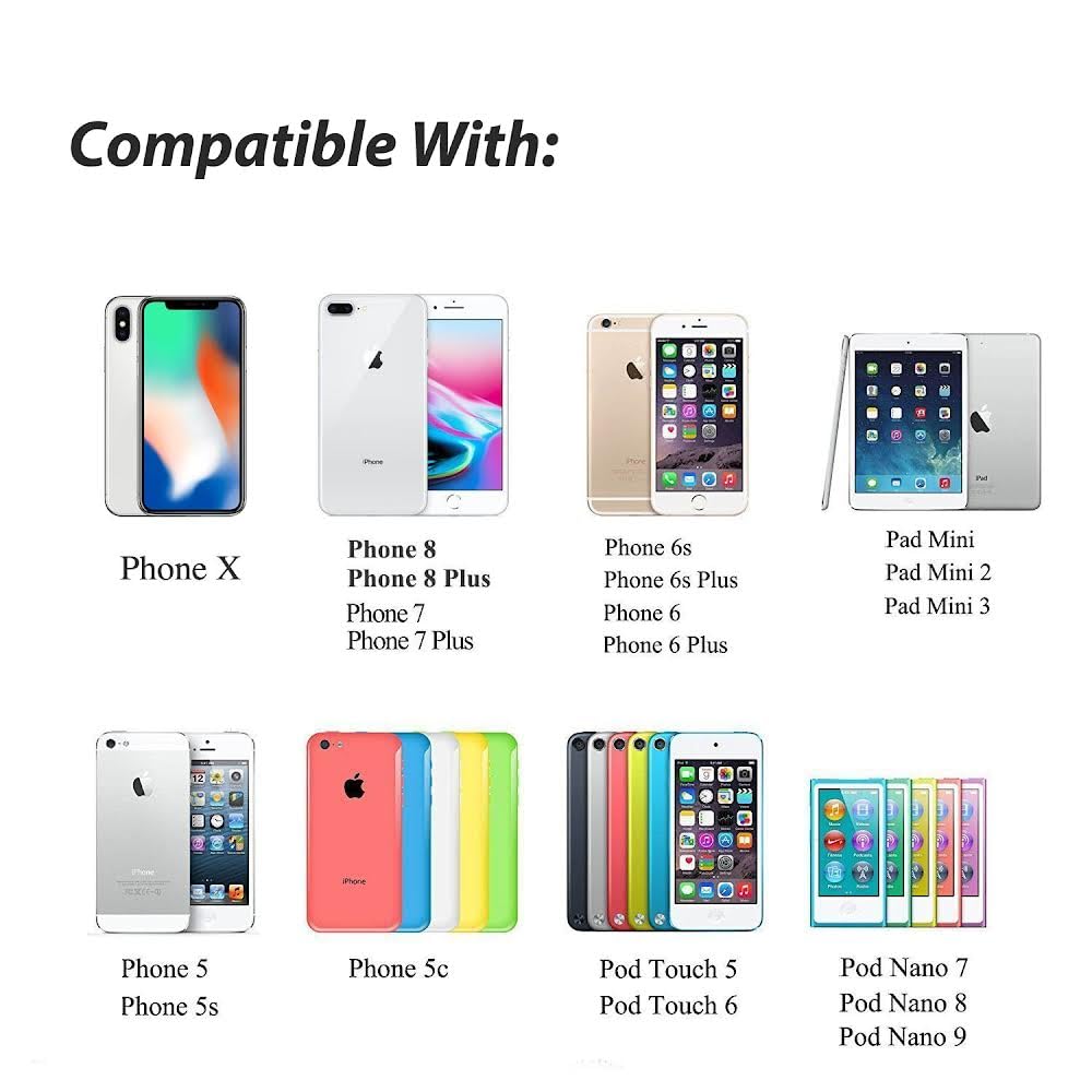 The Charging Cable And The Wall Charger Were Made To Complete Charge And Sync And Compatible With Phone Se, X, Xs, Xs Max, Phone 8, Phone 7/7 Plus, Phone 6S/6S Plus, Phone 6/6Plus, Phone 5/5S/5C, Pad Mini , Pod Touch 5Th Generation & Pod Nano 7Th Generation. Compatible With All Otterbox Cases.