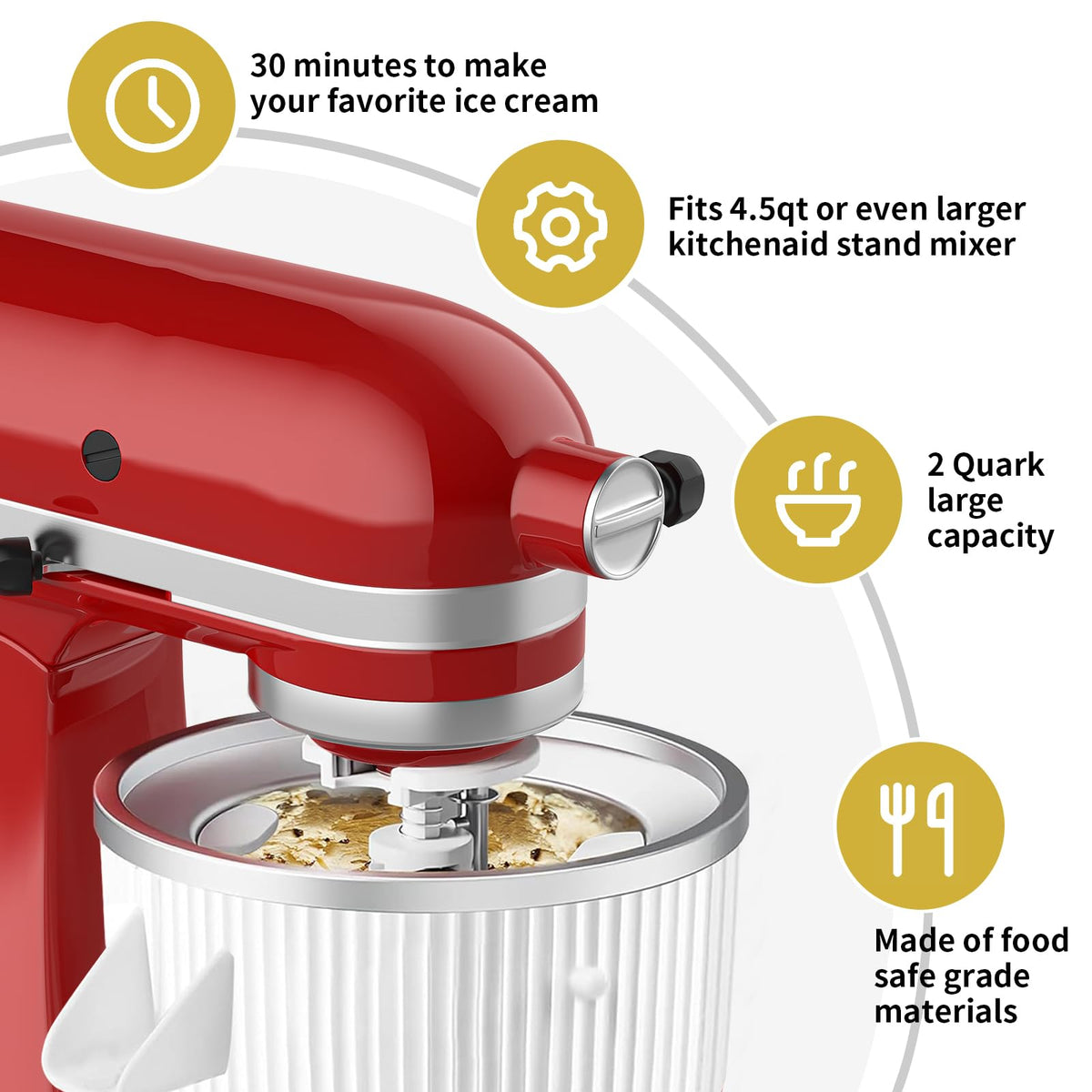 Ice Cream Attachment For Kitchenaid,Fits Kitchenaid 4.5 5Qt/5.5 6 Quart Stand Mixers,Mixer Accessories,Makes 2 Quarts Of Frozen
