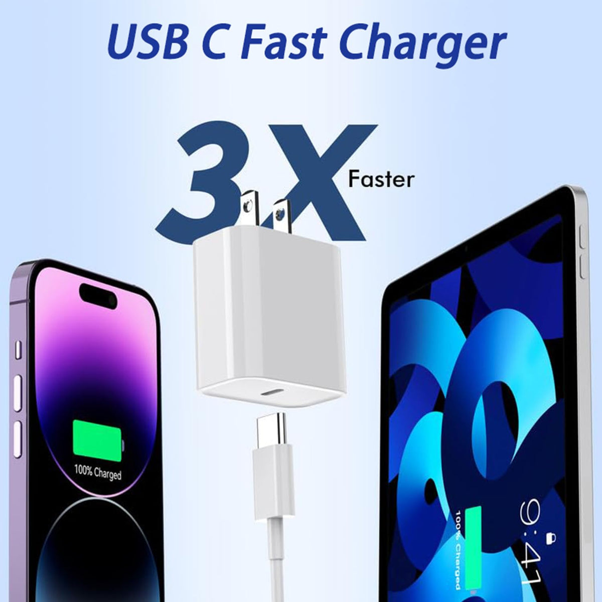 New Ipad Tablet Fast Charger:-Input:Ac 100240, 50/60Hz-Output: 5V/3A,9V/2A-2.22A,12V/1.5A-1.67A,3.3-5.9V/3A,3.3-11V/1.63A-1.8A-Maximum Power:20 Wattipad Usb C Charger Features:-Built-In Advanced Usb Pd3.0 Chip,And Loaded With 20W Of Output Power To Give Your Ipad A Full-Speed Charge.-Easy To Carry- Compact Size And You Can Easy To Storage When You Are Traveling.-Built-In Multi-Charging Protection Your Devices From Over-Current,Over Heat And Over Charging. Safety Charge And No Damage To Your Devices.-Included A 3Ft/ 1M Usb C To C Charging Cable, Rapid Charging At 3A Maximum, Quick Connect And High Speed Data Transfer Speed Up To 480Mb/S Helps You Work Efficiently. -Reversible Usb Type-C Connector - Lets You Connect Your Cable To Your Device In Either Direction.Compatible Modelsfor Ipad:-New Ipad Pro 13 Inch (M4) 2024-Ipad Pro 11 Inch (M4) 2024-Ipad Pro 12.9 Inch 6Th Generation(2022)-Ipad Pro 12.9 Inch 5Th Generation(2021)-Ipad Pro 12.9 Inch 4Th Generation(2020)-Ipad Pro 12.9 Inch 3Rd Generation(2018)-Ipad Pro 11 4Th Generation(2022)-Ipad Pro 11 3Rd Generation(2021)-Ipad Pro 11 2Nd Generation(2020)-Ipad Pro 11 1St Generation(2018)-Ipad Air 13 Inch(M2) 2024-Ipad Air 11 Inch(M2) 2024-Ipad Air 5Th Gen(2022)-Ipad Air 4Th Gen(2020)-Ipad Mini(A17 Pro) 2024-Ipad Mini 6Th Gen(2021)-Ipad 10Th Gen(2022)Note: Only These Ipad Model Are Usb C Connector, Please Confirm Your Ipad Model. For Phones:-Galaxy Z Flip 5/Z Flip 4/Z Flip 3/ Z Fold 5/ Z Fold 4/ Z Fold 3 5G-Galaxy S24/S24 Ultra/S24 Plus/Galaxy S23/S23 Ultra/S23 Plus-Galaxy S22/S22 Ultra/S22 Plus/Galaxy S21/S21 Ultra/S21 Plus 5G-Galaxy Note 20/ Note 20 Ultra 5G/Galaxy S20/ S20+/ S20 Ultra 5G-And More Usb C Connector Phonewhat You Get:-1 X 3Ft Usb C To Usb C Charging Cable - White-1 X 20W Usb C Charger Block - White
