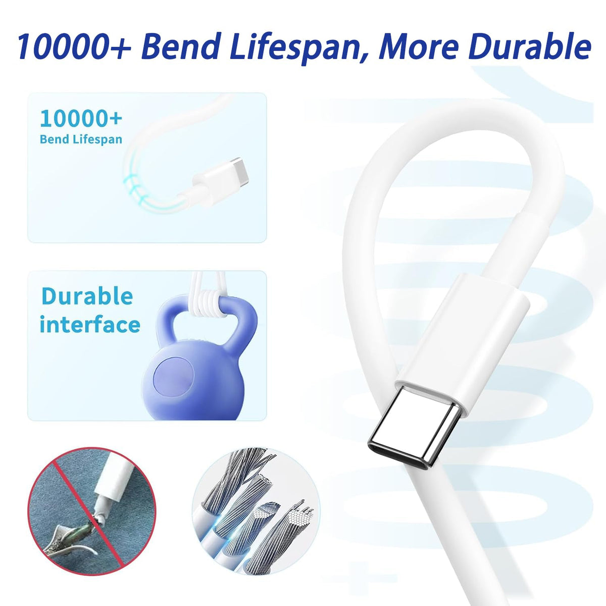 Q: Does the charger come with a cable, and what is its length?A: Yes, the iPad Fast Charger includes a 3FT (1m) USB-C to USB-C charging cable, allowing for rapid charging at a maximum speed of 3A and high-speed data transfer up to 480Mb/s.