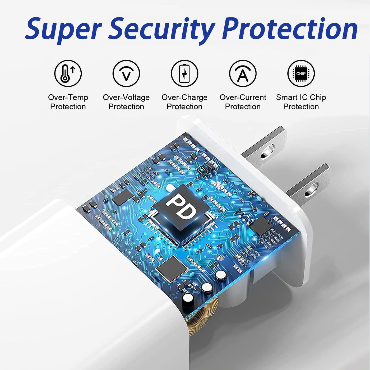 Q: What safety features does the iPad Fast Charger have?A: The iPad Fast Charger is equipped with a built-in multi-charging protection system that safeguards your devices from over-current, over-voltage, overheating, and short-circuiting. It is ETL, FCC, CE, and ROHS certified for safety.