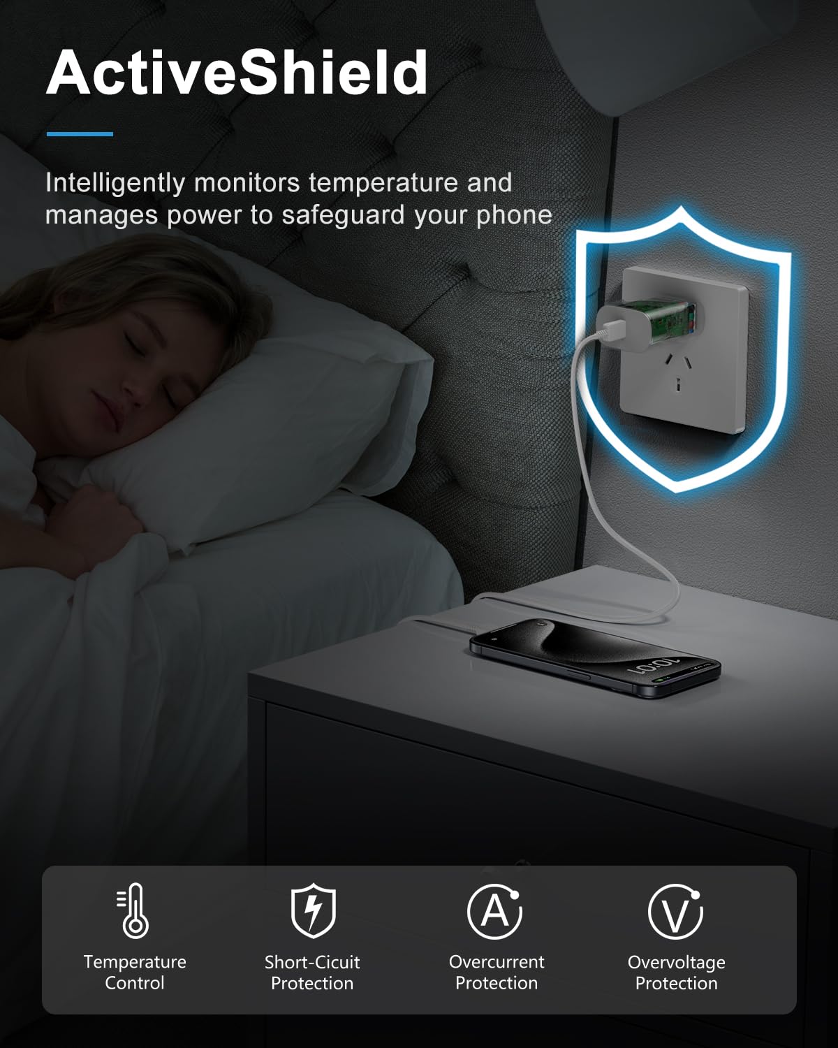 Q: What does the package include?A: The package includes two 25W USB-C Phone chargers and two 6-foot USB-C to USB-C charging cables, along with an 18-month warranty and 24/7 US-based customer support.