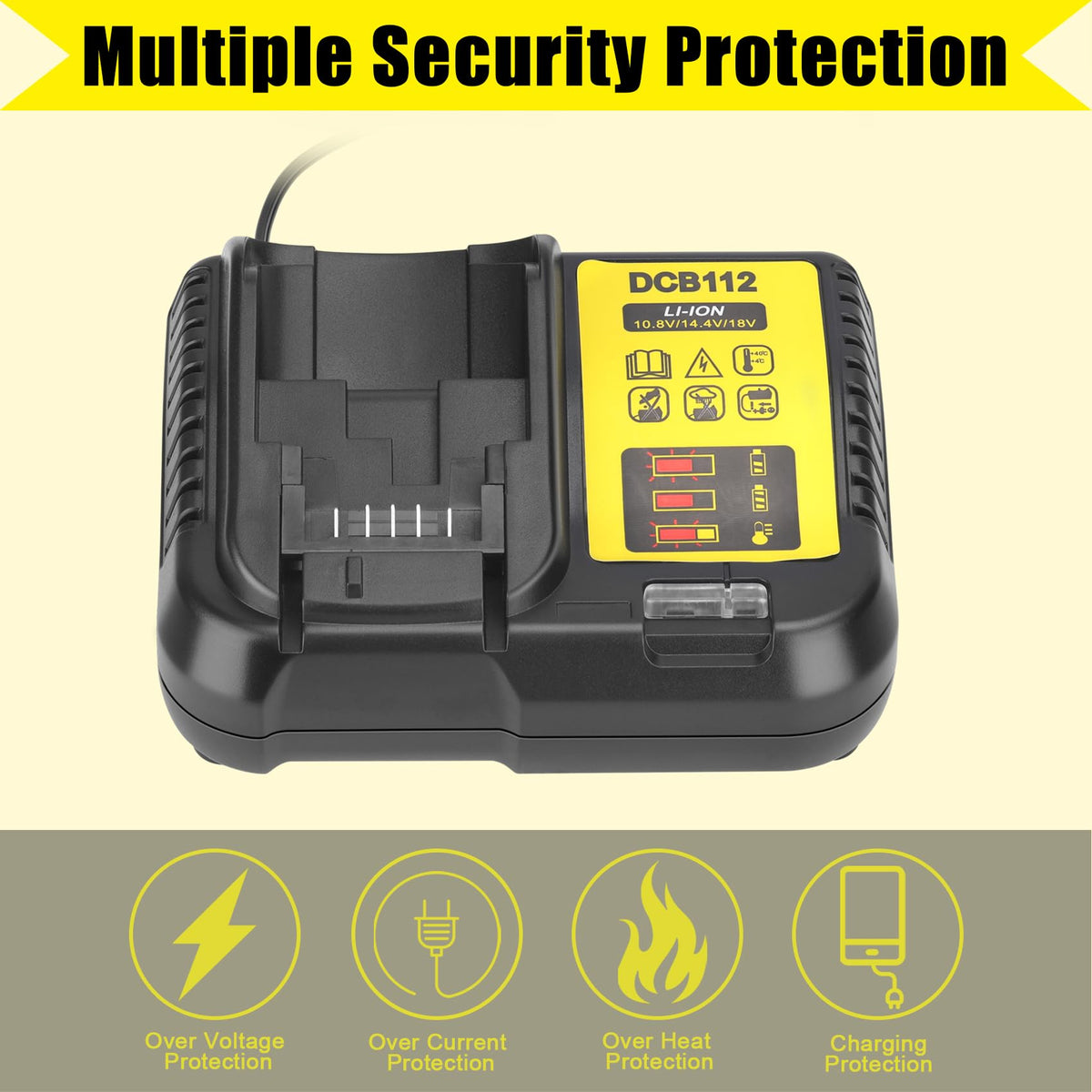 Q: Is the JYJZPB DCB112 Battery Charger compatible with all Dewalt 12V and 20V batteries?A: Yes, the JYJZPB DCB112 Battery Charger is designed to be compatible with Dewalt 12V to 20V batteries, including models DCB206, DCB204, DCB230, DCB240, DCB120, DCB126, DCB612, DCB609, and DCB606.