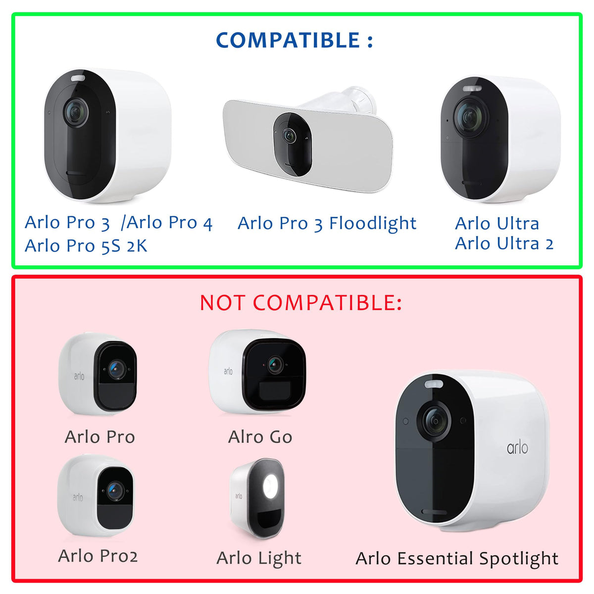 Karotto Solar Panel Charging Your Arlo Cameras,No Need To Frequently Replace The Battery ,No More Worrying About Dead Batteries.Compatible Camera Models: Arlo Pro 5S 2K, Arlo Pro 4, Arlo Pro 3, Arlo Pro 3 Floodlight, Arlo Go 2, Arlo Ultra 2, And Arlo Ultra Cameras. Max Power Output 3.8W/6Vpackage Content:1* Solar Panel With 10Ft Power Cord1X 360-Degree Mounting Bracket4Pcs Screws20* Circle Cable Clips With Steel Nailplease Note: Arlo Camera Are Not Include 2.Not Compatible Arlo Essential Camera