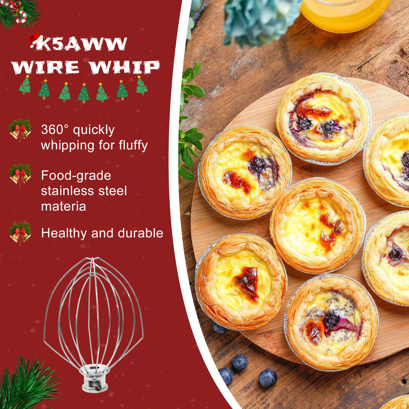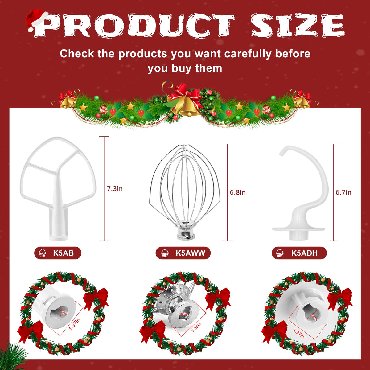 Kithnen Aid Accessories Including K5Adh Coated C Dough Hook&K5Ab Coated Flat Beater&K5Aww Wire Whip 3 Set Compatible For 5 Qt Ti