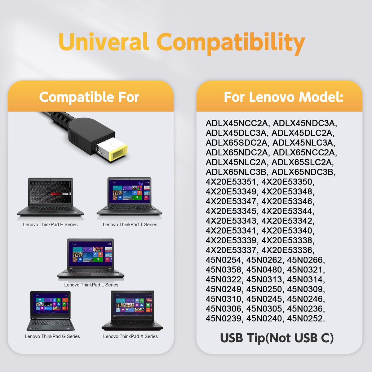Laptop Charger For Lenovo Adlx45Ndc3A, Adlx45Ncc2A, Adlx45Dlc3A, Adlx45Dlc2A, Adlx65Nlc2A, Adlx65Ncc2A, Adlx65Sdc2A, Adlx45Nlc3A, Adlx65Ndc2A, Adlx65Slc2A Model, 65W 45W Power Supply Cord