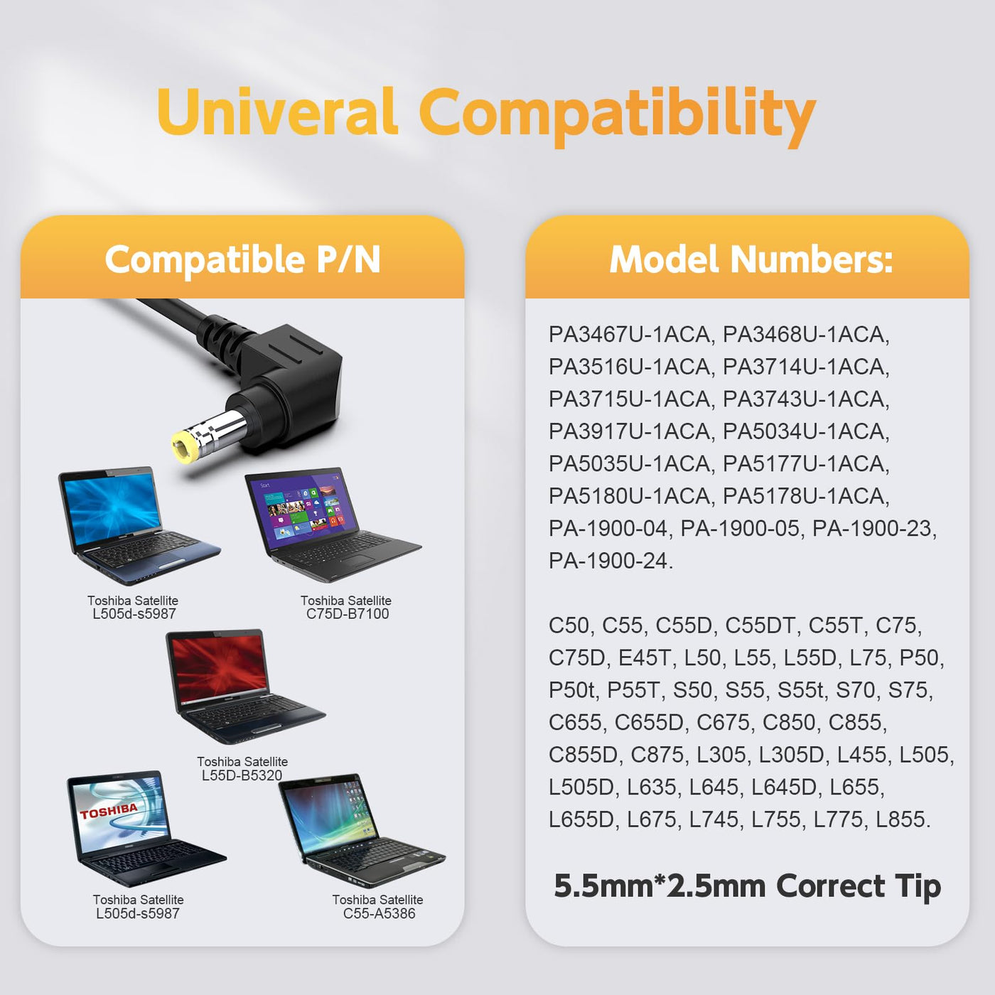Laptop Charger For Toshiba Satellite Pa3468U-1Aca, Pa3516U-1Aca, Pa3714U-1Aca, Pa5035U-1Aca, Pa5177U-1Aca, Pa5180U-1Aca, Pa3467U