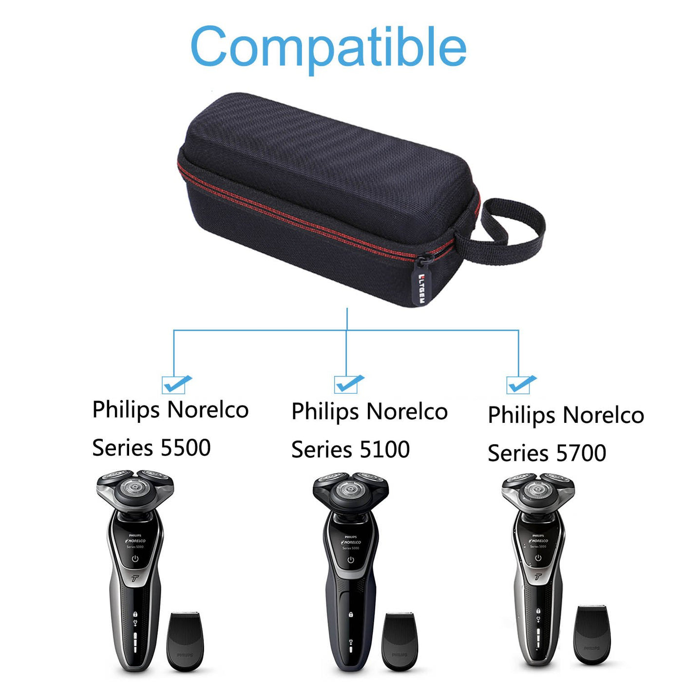 Q: Is the LTGEM case compatible with all Philips Norelco Electric Shaver models?A: The LTGEM case is specifically designed to fit various models of Philips Norelco Electric Shavers, including Series 2100, 2300, 3500, 6800, 3100, 5500, 5100, 5300, 5700, 6880, and 7100.