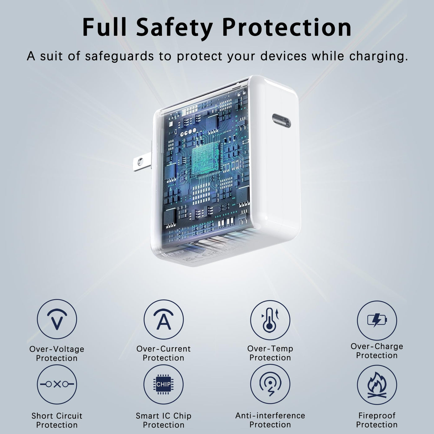 Usb-C Fast Charger Is Your Perfect Replacement Chargera Included A Specialized 5A Usb C To C Cord To Charge Usb C Macbook At Full Speed 100W Revive Your Macbook Pro 16 Inch To 100% In Only 1H 35Mins Works With Usb C 96W, 87W, 67W, 61W, 30W, 29W Pd Charger Adaptera Please Press Ctrl + F] To Search Your Modelsaa One For All Usb C Charger Wide Compatibility: Compatible With Pd 20W 25W 29W 30W 61W 67W 87W 96W 100W Model Compatible With Macbook Pro 14-Inch 2021(A2442) Compatible With Macbook Pro 16-Inch 2021, 2019(A2166) Compatible With Macbook Pro 15-Inch 2021, 2020, 2018, 2017, 2016 (A1706 A1707 A1708 A1719) Compatible With Macbook Pro 13-Inch 2021, 2019, 2018, 2017, 2016 (A1706 A1707 A1708 A1718) Compatible With Macbook Retina 12-Inch Early 2017, 2016, 2015 (A1534 A1540 A1646) Compatible With Macbook Air Retina 13-Inch 2020(New), 2019, 2018 Compatible With Ipad Pro 2020 2018 129 Inch Gen43, Ipad Pro 11 Inch Gen 21 Compatible With Androidphone: Samsung Galaxy, Google Pixel, Lg, Moto, One Plus Etc Compatible With Nintendo Switch Compatible With Google Pixelbook Chromebook Pixel Dell Xps13 Lenovo Yoga Hp Spectre Samsung Notebook9Chromebook Compatible Withaiphone 14 14Pro 14 Plus 14 Pro Max 13 Mini 13 13 Pro 13 Pro Max 12 Series 11 Series Xs Xs Max Xr 8 8 Plus(Not Include Usb-C To Lightning Cable Charging Cable) And For All Usb C Port Smartphone, Laptop And Devices
