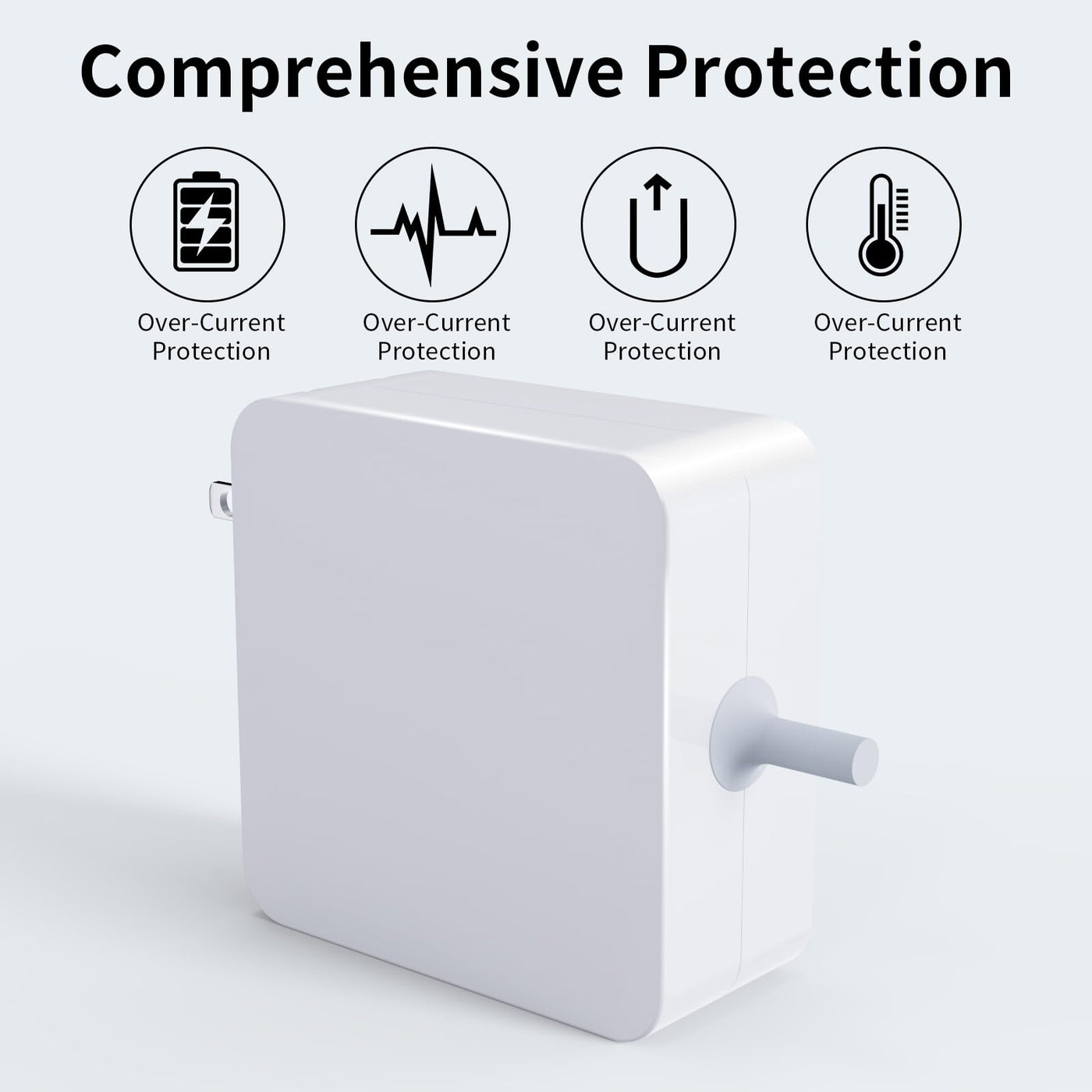 Q: Does this charger come with any safety features?A: Yes, this MacBook Pro Charger is manufactured with multiple intelligent protection features, including over-current, over-voltage, overload, and short-circuit protection, ensuring safe and reliable charging.