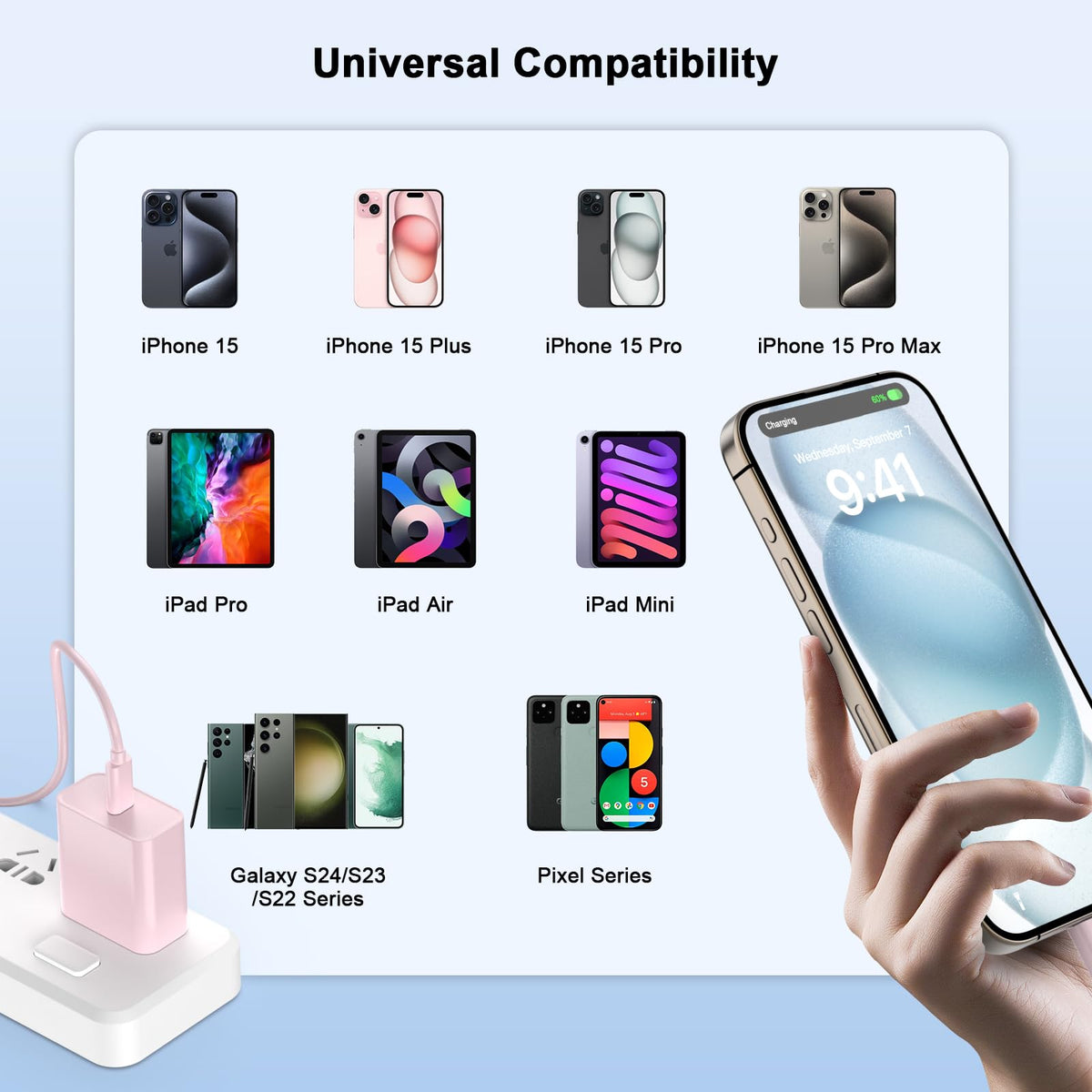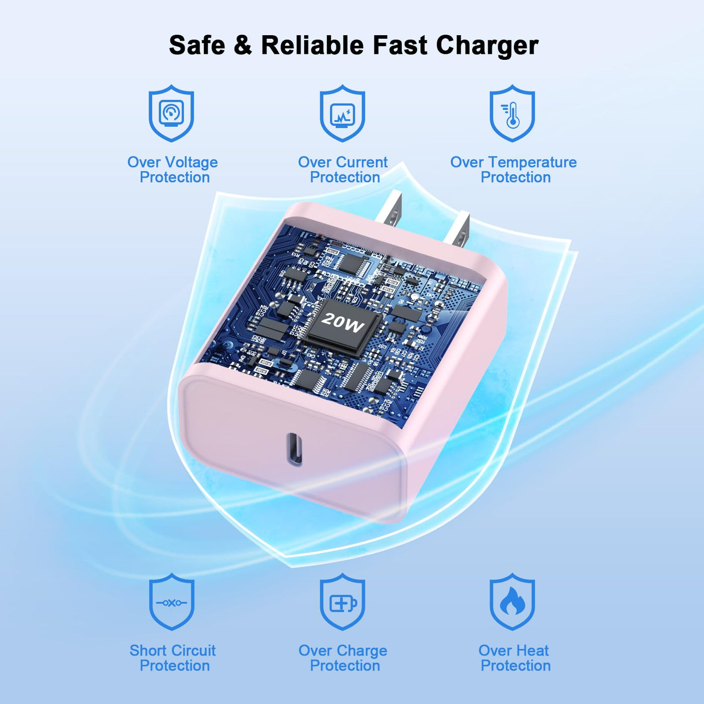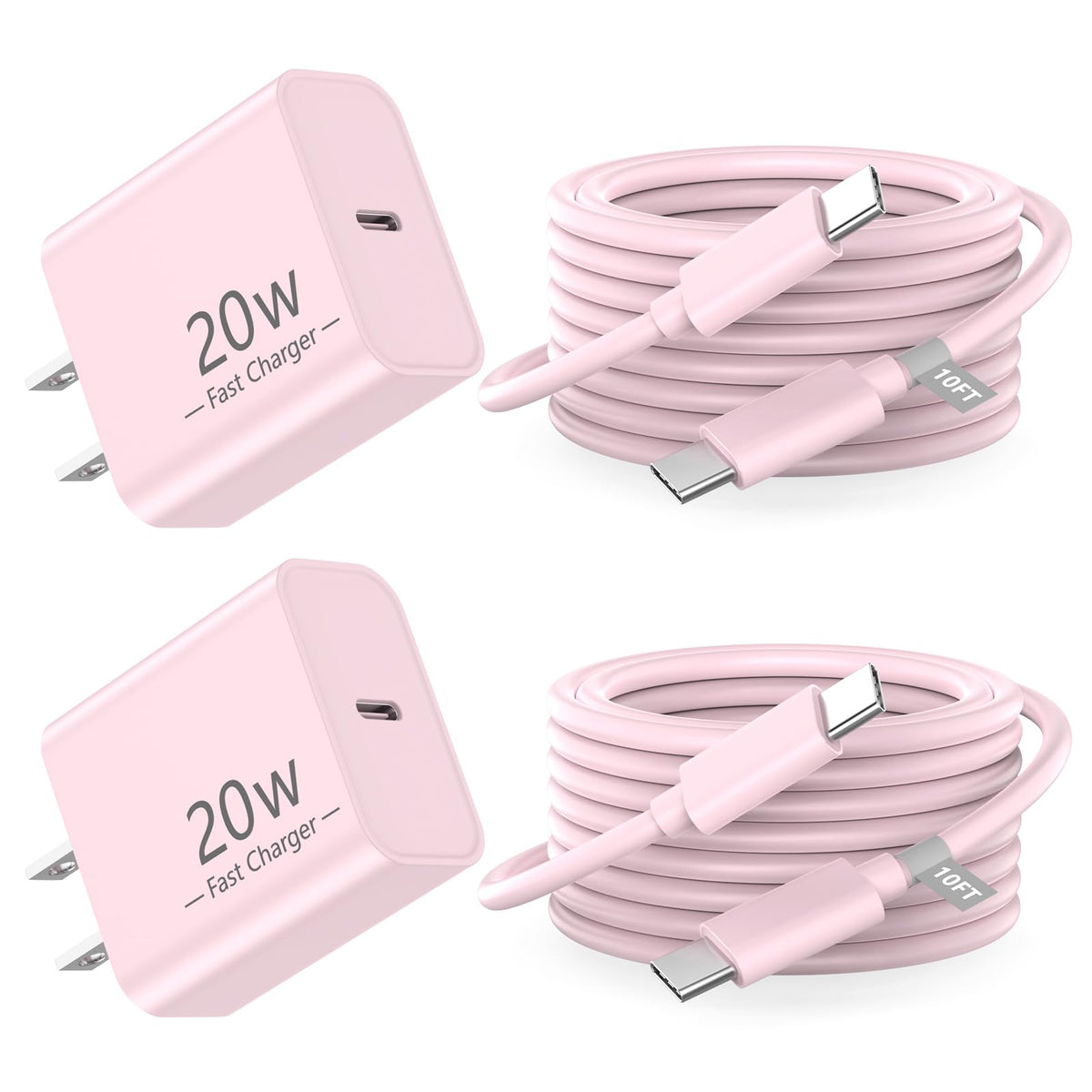 Matsusho Iphone 15 Charger Fast Charging 10 Ft, 2 Pack 20W Usb C Wall Charger With 10Ft Type C Charger Fast Charging Cable Compa