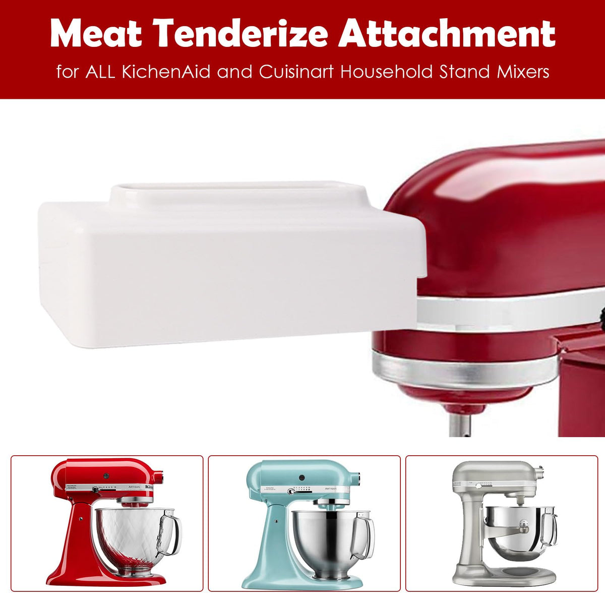 The Meat Tenderizer Works With All Kitchenaid And Cuisinart Home Stand Mixers And Is Capable Of Cutting Meat Up To 4/5 Inch Thick. It Is Designed With An Aluminium Alloy Construction And Stainless Steel Gears For Durability.The Meat Tenderizer Attachment For Kitchenaid Mixer Can Be Used To Tenderise Boneless Meats Such As Beef, Pork, Lamb And Venison. Using A Meat Tenderizer Tool Allows The Meat To Better Absorb Marinades And Rubs, Making Food Fluffier And Tastier.This Meat Tenderizer Accessories And Attachments For Kitchen Aid Saves Time And Takes Less Than 10 Seconds To Evenly Tenderise Any Meat, Allowing Home Cooks To Season And Marinate Meat Before Cooking.It'S Also Very Easy To Install And Use, Simply Attach The Meat Tenderizer Attachments And Accessories To The Front Port Of Your Stand Mixer.For Cleaning, It Can Be Hand Washed In Warm Water And Neutral Detergent Or Dishwasher Safe And Rinsed And Dried Immediately.