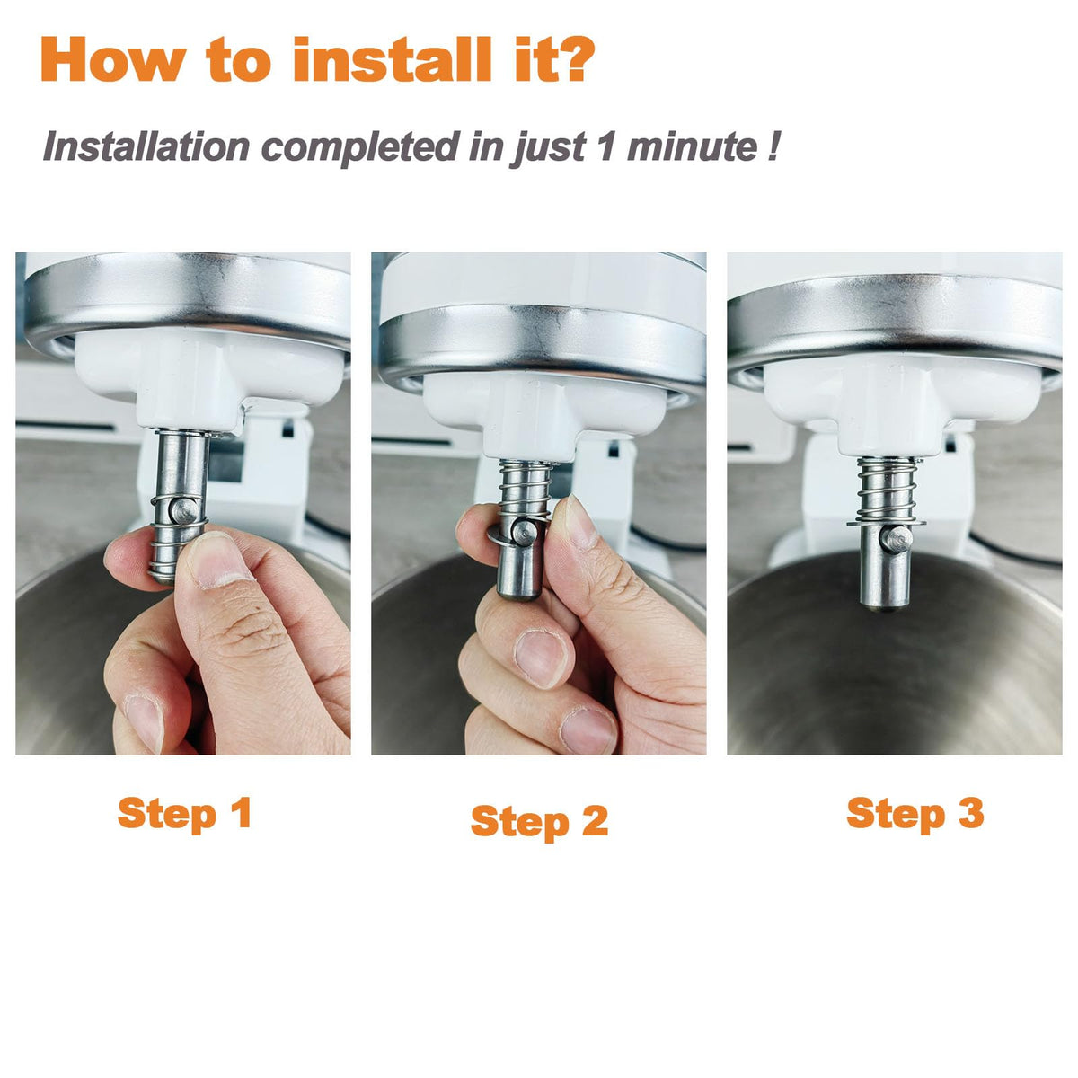 Q: How long does it take to install the spring and washer kit?A: Installation of the MITCHENIFY Spring and Washer Kit is quick and easy, taking just about 1 minute. No disassembly of your mixer is required.