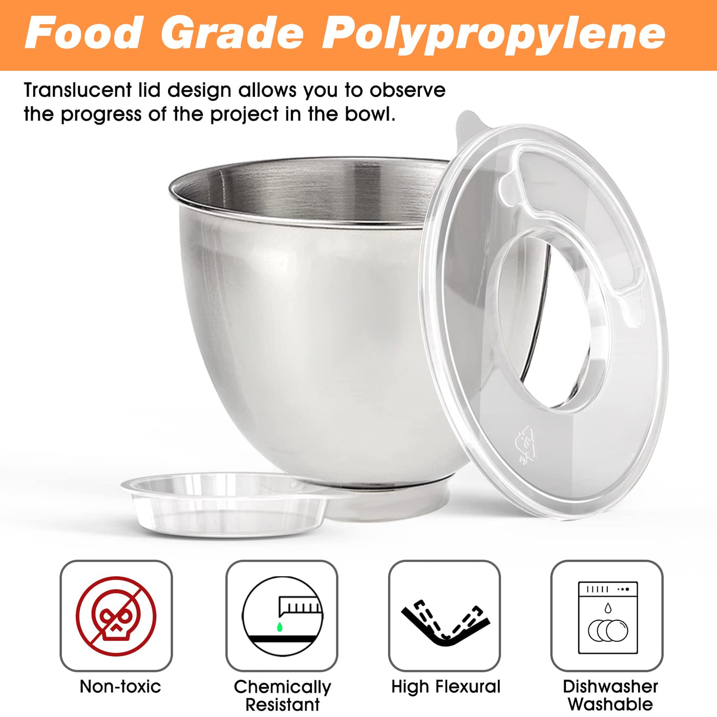 [Wide Compatibility]: The Mixer Bowl Covers Are Design For Kitchenaid 4.5-5Qt Tilt-Head Stand Mixers, Compatible With Models: K45Ss, Ksm75, Ksm90, Ksm95, Ksm150Ps, Ksm152Ps And Ksm155Gb And So On. | [Premium Material]: These Mixer Splash Guards Are Made Of Great Quality Polypropylene, Chemical And Heat Resistance, Odorless, Non-Toxic. It Can Be Easily And Safe Cleaned In The Dishwasher Or By Hand Washing. | [Innovative Design]: The Transparent Lid Design Allows You To Observe The Progress Of The Project In The Bowl. Designed With An Extra Pouring Window, You Can Add The Ingredients When Mixing Without Making A Mess. | [Extra Bowl]: The Inner Of The Bowl Lid Is A Small Bowl Marked With A Scale Of 150Ml. When Your Mixing Is Over Or Paused, You Can Cover The Bowl Cover To Achieve Dust-Proof And Fresh-Keeping Effect. | [After Sale Support]: We Provide 30 Days Money Back And 12 Months Warranty For Every Consumer, If You Have Any Questions About The Mixer Splash Lid, Please Feel Free To Contact Us, We Will Be Here To Help You.