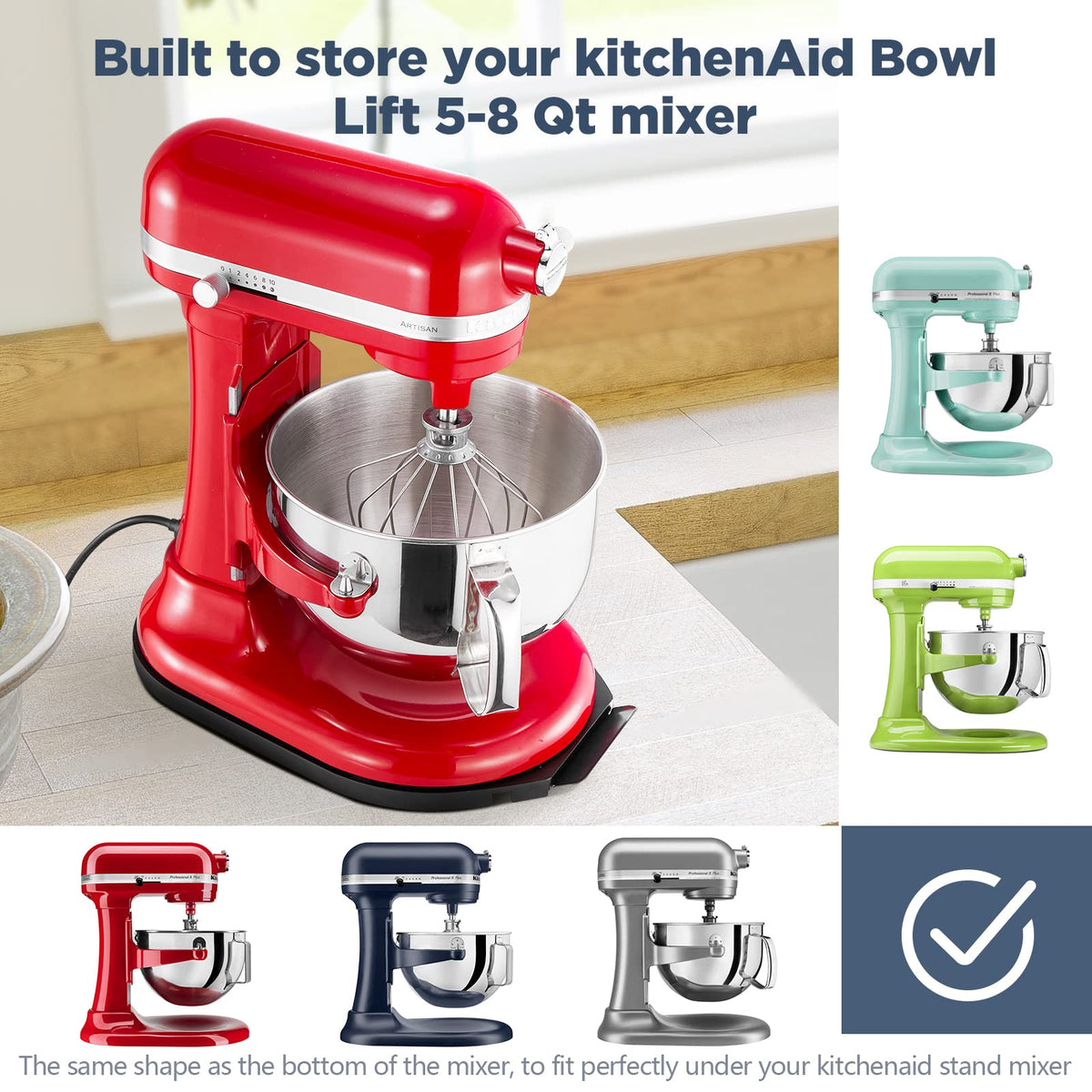 Q: Is this sliding tray compatible with all KitchenAid mixers?A: The Mixer Sliding Tray is specifically designed for the KitchenAid 5-8 Qt Bowl-lift Stand Mixers, including models such as KSM70, KSM55, KSMC895, KSM899, and PRO600. Please note that it is not compatible with the K5SS model.