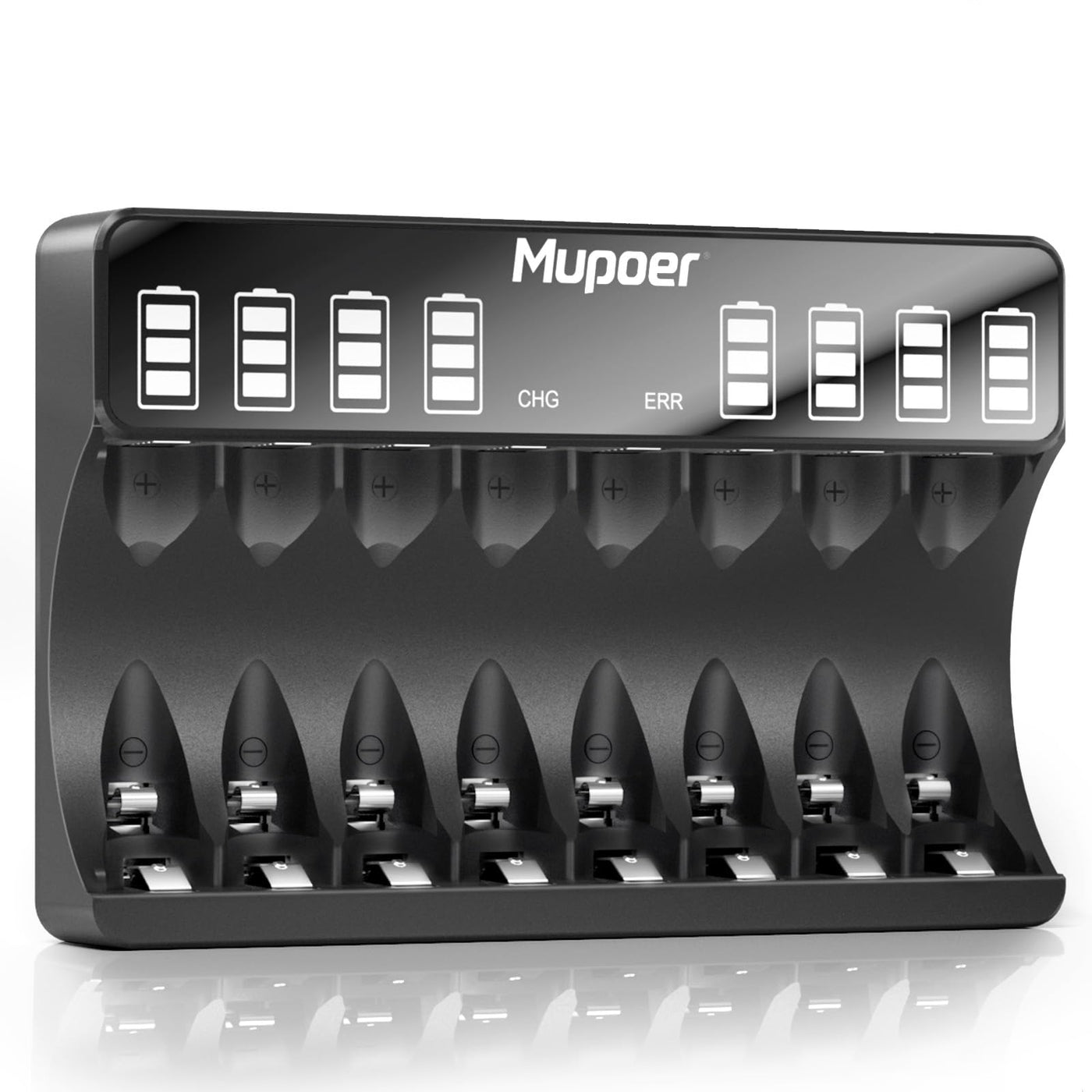 Mupoer Lcd Aa Aaa Battery Charger, 8 Bays Individual Charger For Ni Mh Ni Cd Rechargeable Batteries, Larger Lcd Screen Battery C
