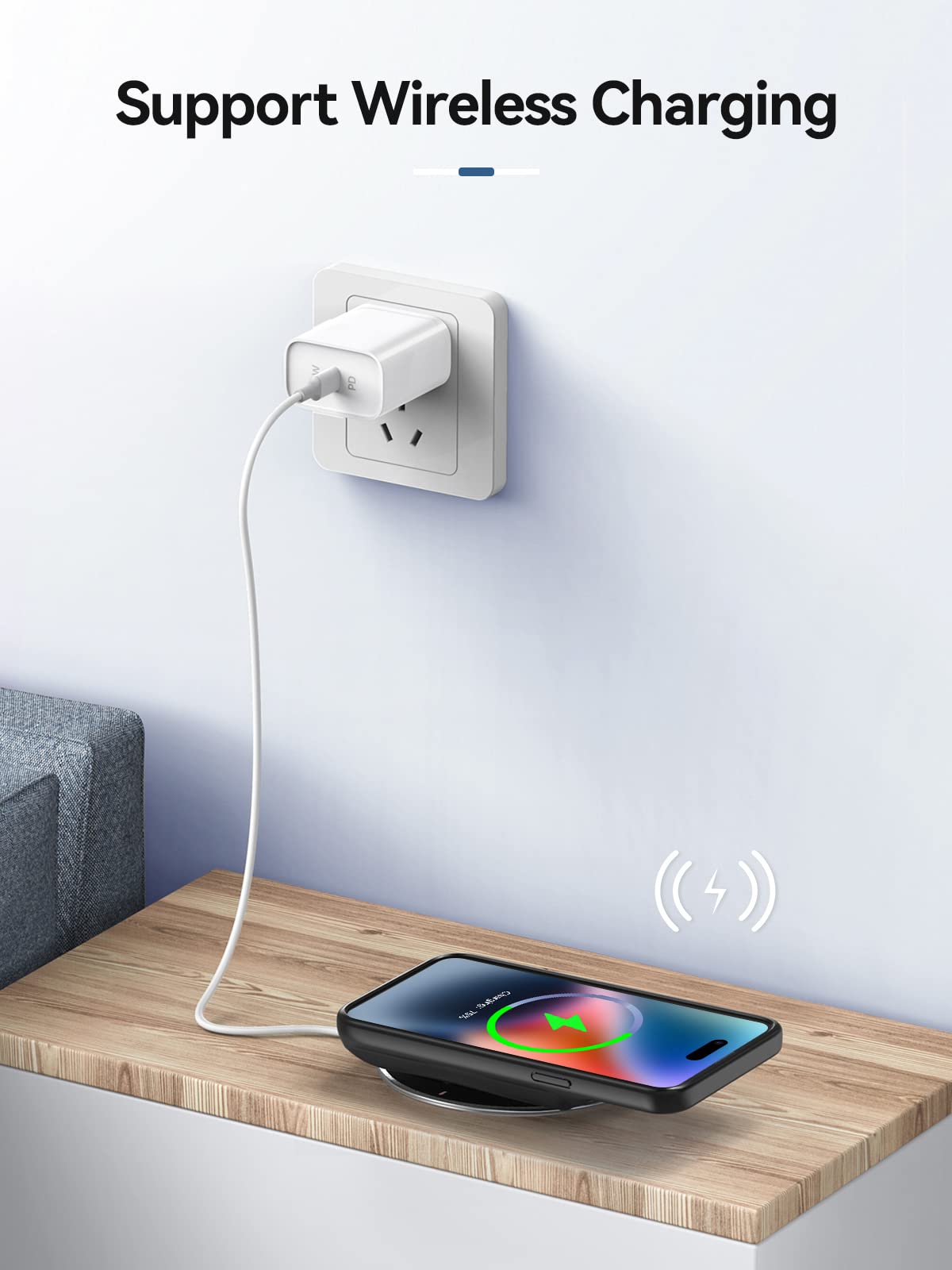 Q: Can I charge my phone wirelessly with this battery case?A: Yes, the NEWDERY Battery Case supports Qi wireless charging. You can charge your iPhone 14 Pro Max and the battery case at the same time. However, please note that it does not support magnetic wireless charging.