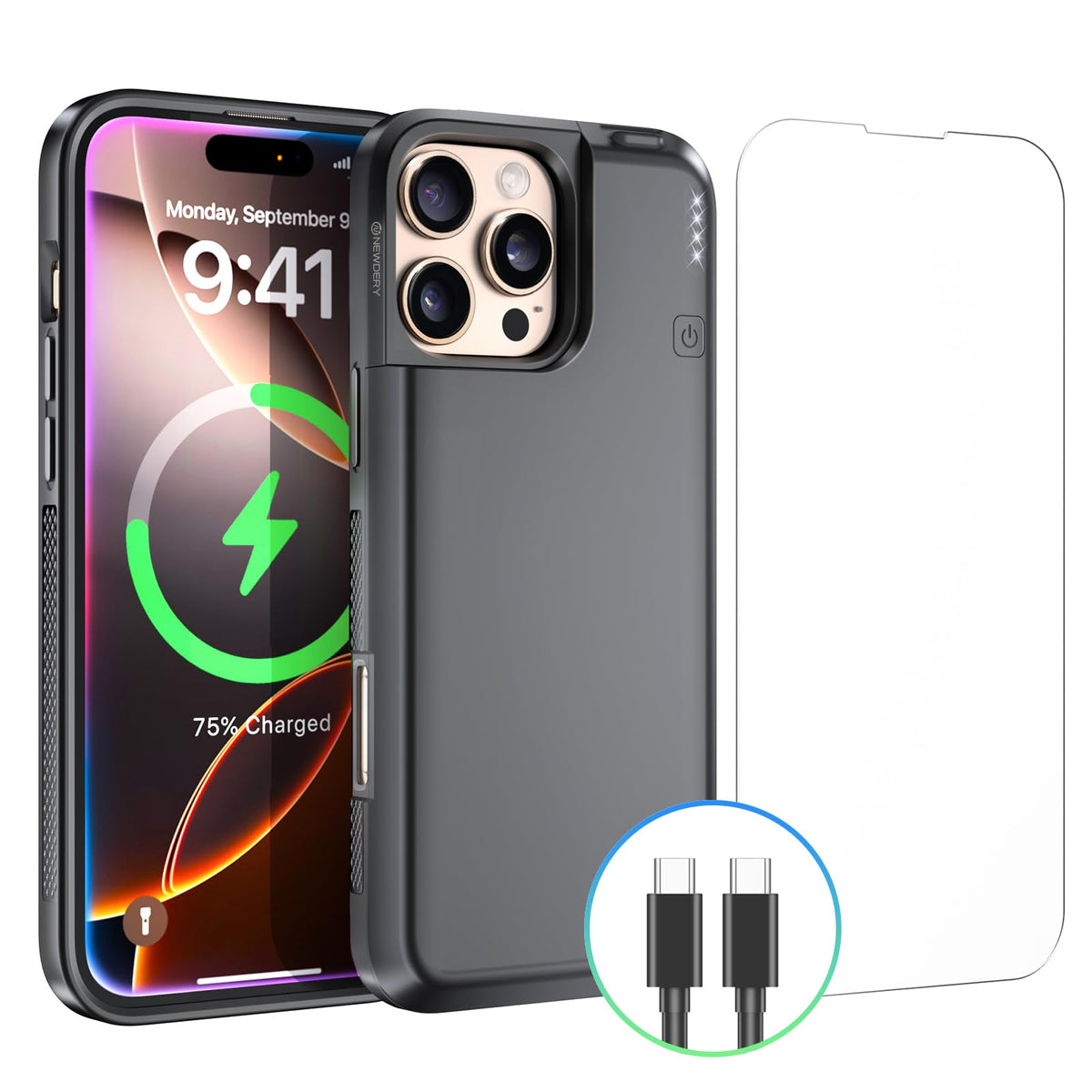 Newdery Battery Case For Iphone 16 Pro 5000Mah, Carplay,Wired Headset,Sync-Data Supported, Portable Rechargeable Charger Chargin