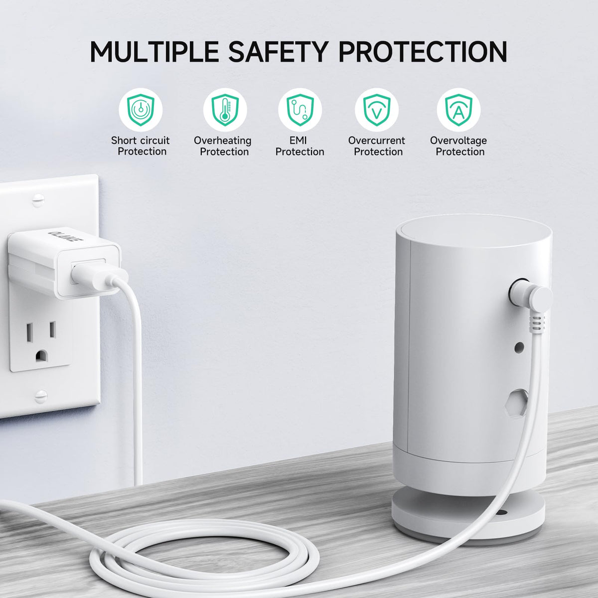 Q: How long is the OLAIKE charging cable, and is it durable?A: The OLAIKE charging cable measures 26 feet (8 meters) long, allowing you to reach power outlets both indoors and outdoors. It is designed to be thin yet durable, making it resistant to breaks.