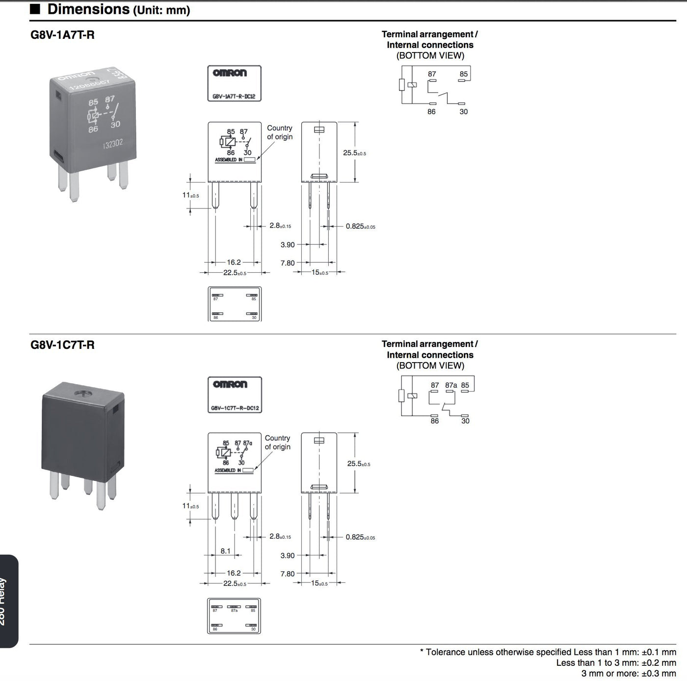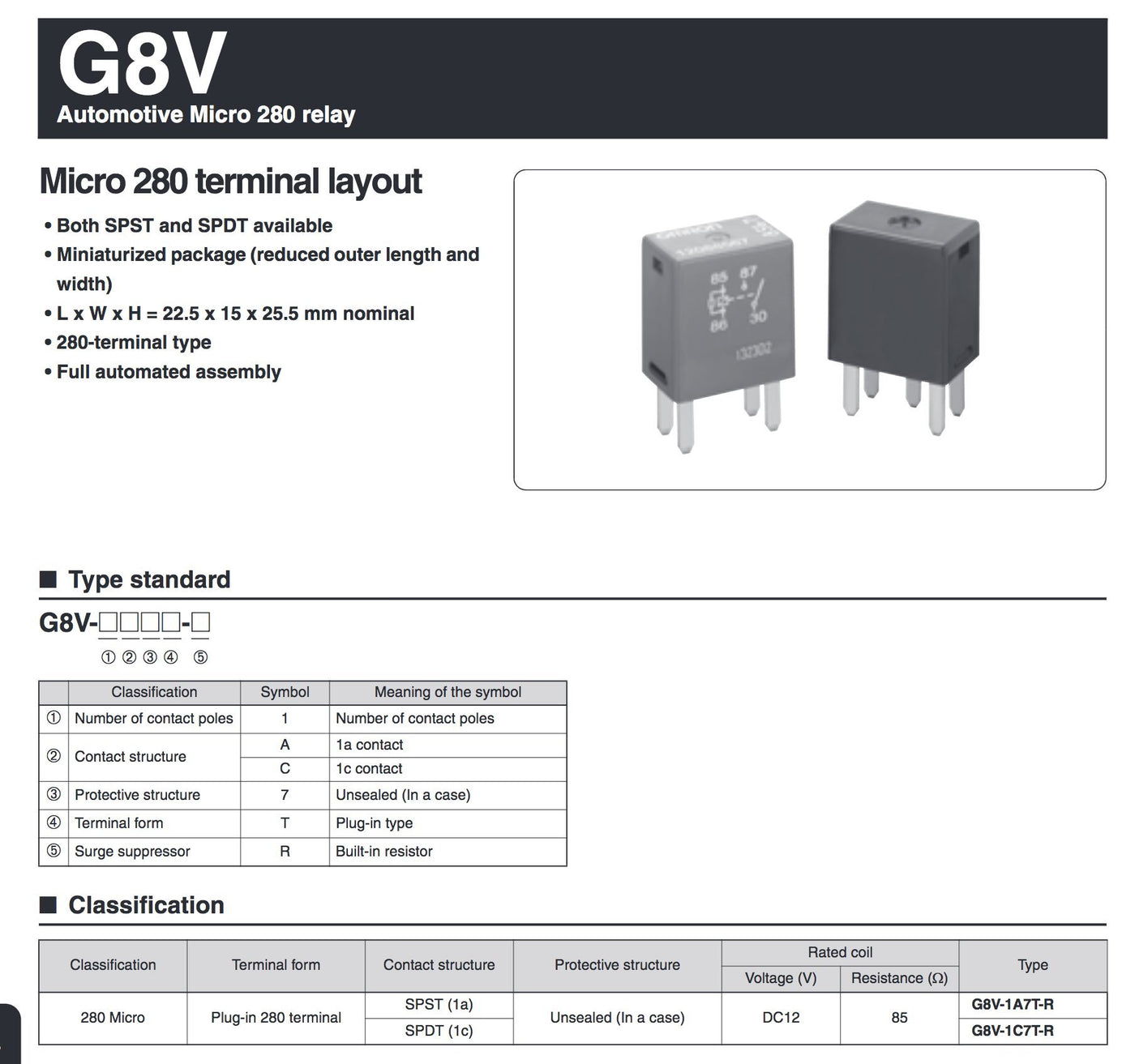 Q: How do I install the OMRON G8V-RH-1C7T-R-DC12 relay?A: Installation of the OMRON G8V-RH-1C7T-R-DC12 relay involves connecting the relay terminals according to your circuit requirements. It is recommended to follow the wiring diagram provided in your vehicle's manual or consult a professional for proper installation to ensure safety and functionality.