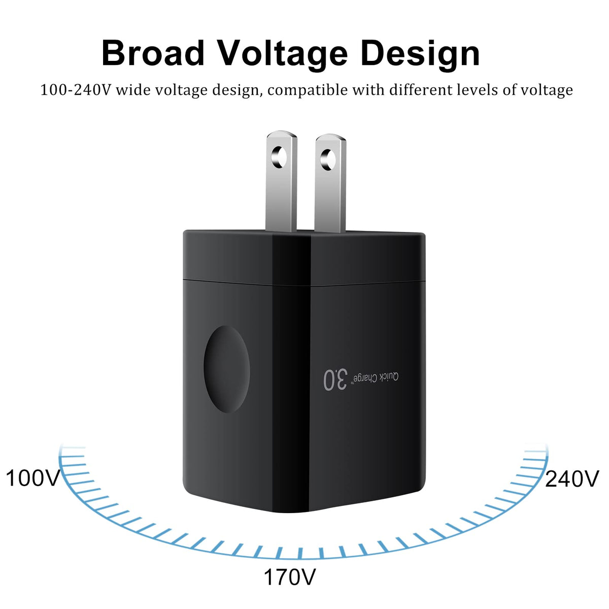 Q: How fast does the Quick Charge 3.0 feature charge my device?A: The Quick Charge 3.0 Wall Charger can recharge compatible devices up to 80% in just 35 minutes, delivering charging speeds that are four times faster than conventional chargers.