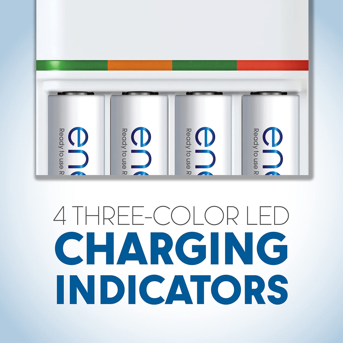 Eneloop Aa And Aaa Nimh Ready To Use Rechargeable Batteries Utilize Panasonic Advanced Rechargeable Battery Technology, Allowing Them To Be Recharged Up To 2,100 Times. Eneloop Aa And Aaa Rechargeable Batteries Deliver Consistent Power Performance, Maintain 70% Of Their Charge For Up To 10 Years, Come Pre-Charged By Solar Power (At The Factory) And Are Ready To Use Out Of The Package. These Eneloop Batteries Also Feature Extreme Temperature Performance Down To -4 Deg F. Pair Eneloop And Eneloop Pro Aa And Aaa Batteries With Panasonic Advanced, Quick Advanced, Or Super Quick Advance Eneloop Chargers To Maximize Your Rechargeable Battery Experience. The Panasonic Eneloop Bq-Cc55, 4-Position Ni-Mh Battery Charger Can Quickly, And Individually Charge Any Combination Of Up To Four Aa Or Aaa Eneloop Batteries In Just 3 Hours (One To Two Aa Or Aaa Batteries Can Be Fully Charged In Up To Just 1.5 Hours). Individual Charging Means You Can Easily And Efficiently Charge From 1 To 4 Batteries With Differing Levels Of Remaining Charge. A Huge Time Saver! The Cc55 Charger Also Features 4 Individual Led Charge Indicator Lights. Once Batteries Are Installed, The Charger Measures Each Cell And The Corresponding Light Indicates The Remaining Charge; Green 80 To 100%, Orange 20% To 80%, And Red 0% To 20%. After Each Battery Reaches The Next Level Of Charging The Led Light Changes To Indicate The Cells Charge Level. Once The Battery Is Completely Charged, The Led Light Turns Off For That Cell. Ideal For Use At Home, In The Office, Or On The Road, This Panasonic Cc55 Charger Is A Quick And Convenient Way To Recharge Any Combination Of Up To Four Aa Or Aaa Ni-Mh Eneloop, Eneloop Pro, Or Conventional Panasonic Ni-Mh Rechargeable Batteries..