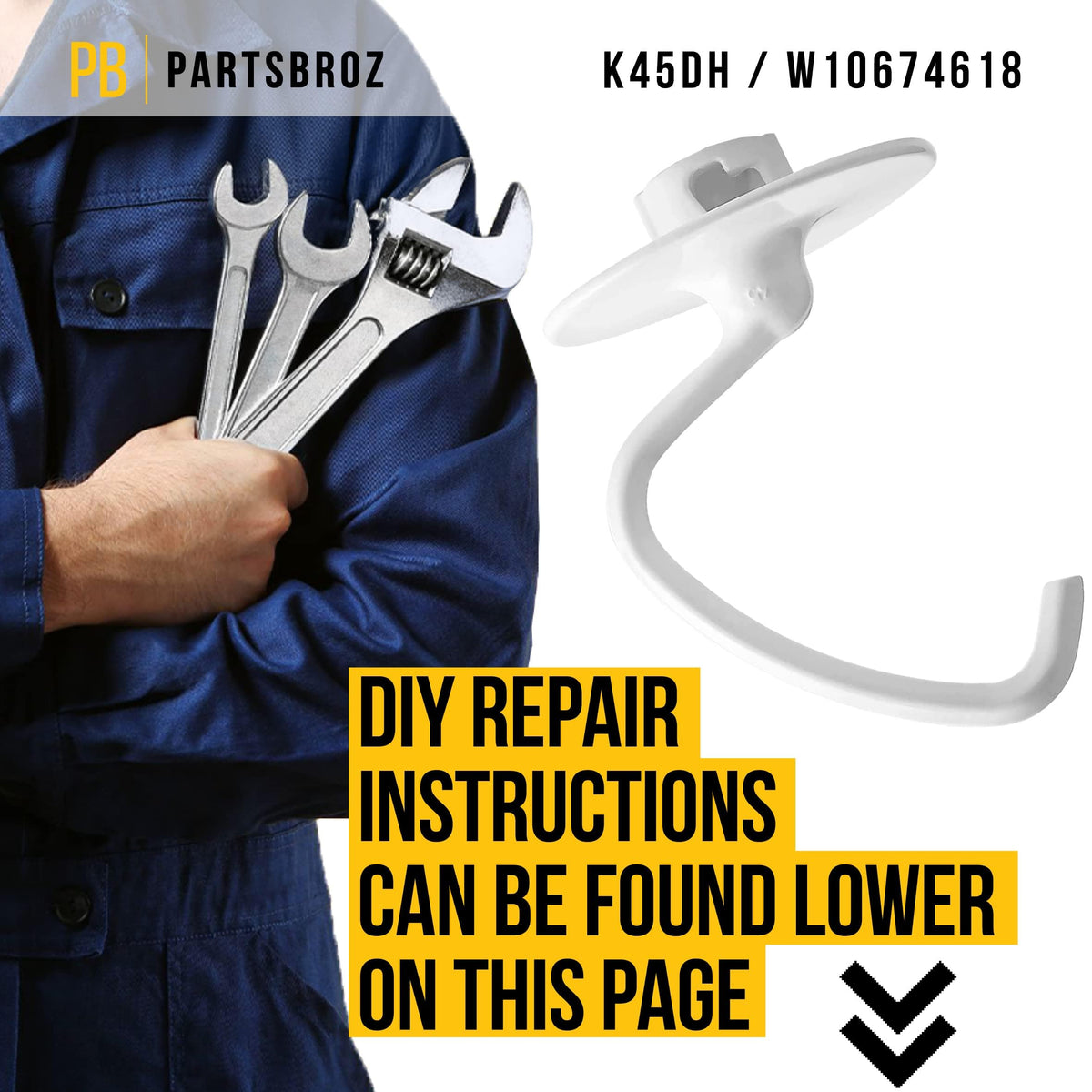 Partsbroz Kitchenaid Dough Hook K45Dh Kitchen Aid Stand Mixer Bread Attachment Ksm90 K45Ss Ksm150 K45Sswh Ksm75 Ksm103 Hookksm90