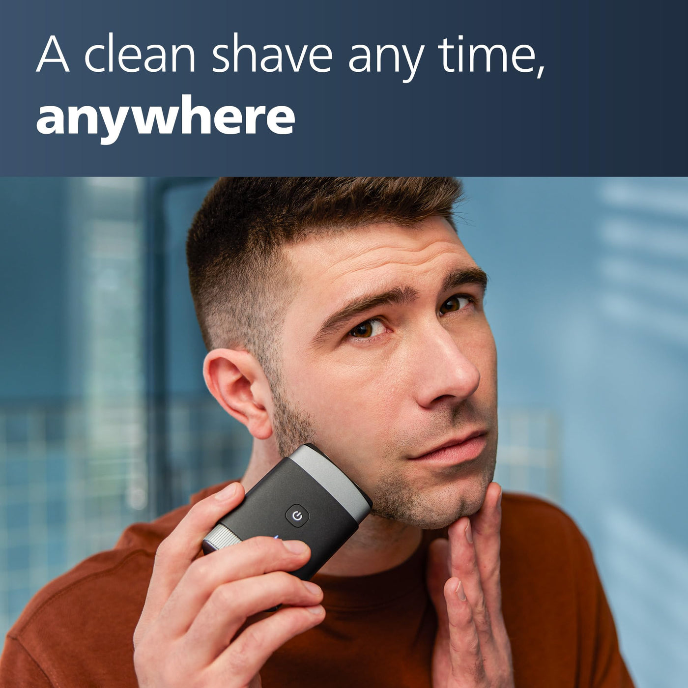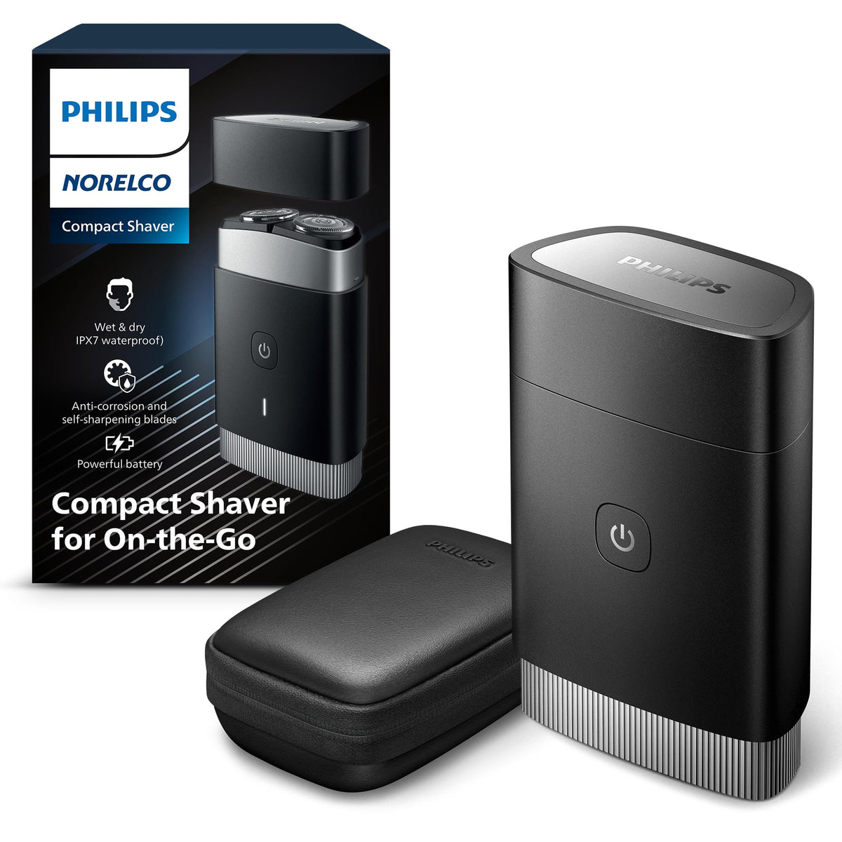 Philips Norelco Compact Portable Men'S Travel Electric Wet & Dry Facial Shaver, Rechargeable For On The Go, 2 Month Battery Life