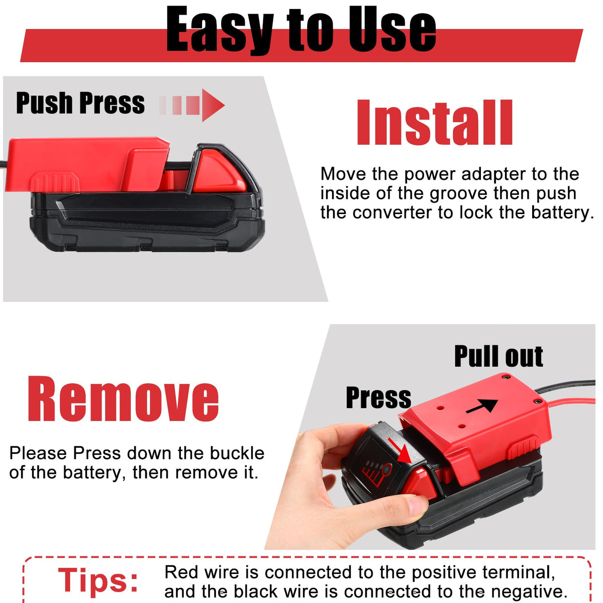 Features: You Can Power Other Devices With This Battery Adapter. Ideal For Applying For Your Robots, Work Lights, R/C Trucks, Toy Cars, Etc.. And You Can Diy Your Own Robot And Car With The Help Of The Power Connector. Simple To Use. Just Slide The Battery In Gently And Lock It In Place. Conveniently Sized For Portability. You Can Easily Fasten Screw Holes To Walls, Automobiles, Machinery, Or Other Places You Choose. Specifications: Material: Abs Materialcolor: Redsize: As The Picture Shownpackage Includes: 4 X Battery Adapternotes: Manual Measurement, Please Allow Slight Errors On Size. The Color May Exist A Slight Difference Due To Different Screen Displays. Please Confirm The Fitting Model Before Placing The Order.