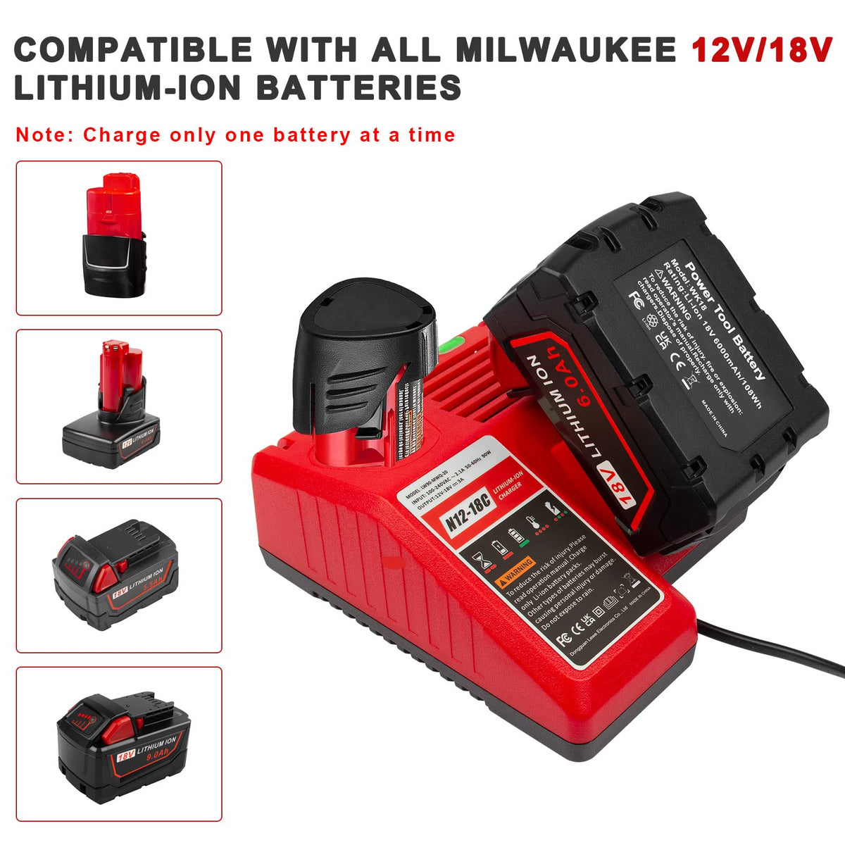 Q: Is this charger compatible with all Milwaukee M12 and M18 batteries?A: Yes, this replacement rapid charger is designed to work with a variety of Milwaukee M12 and M18 lithium-ion battery models, including 48-11-2401, 48-11-2420, 48-11-1815, and more. However, it is recommended to charge only one battery at a time for optimal performance.