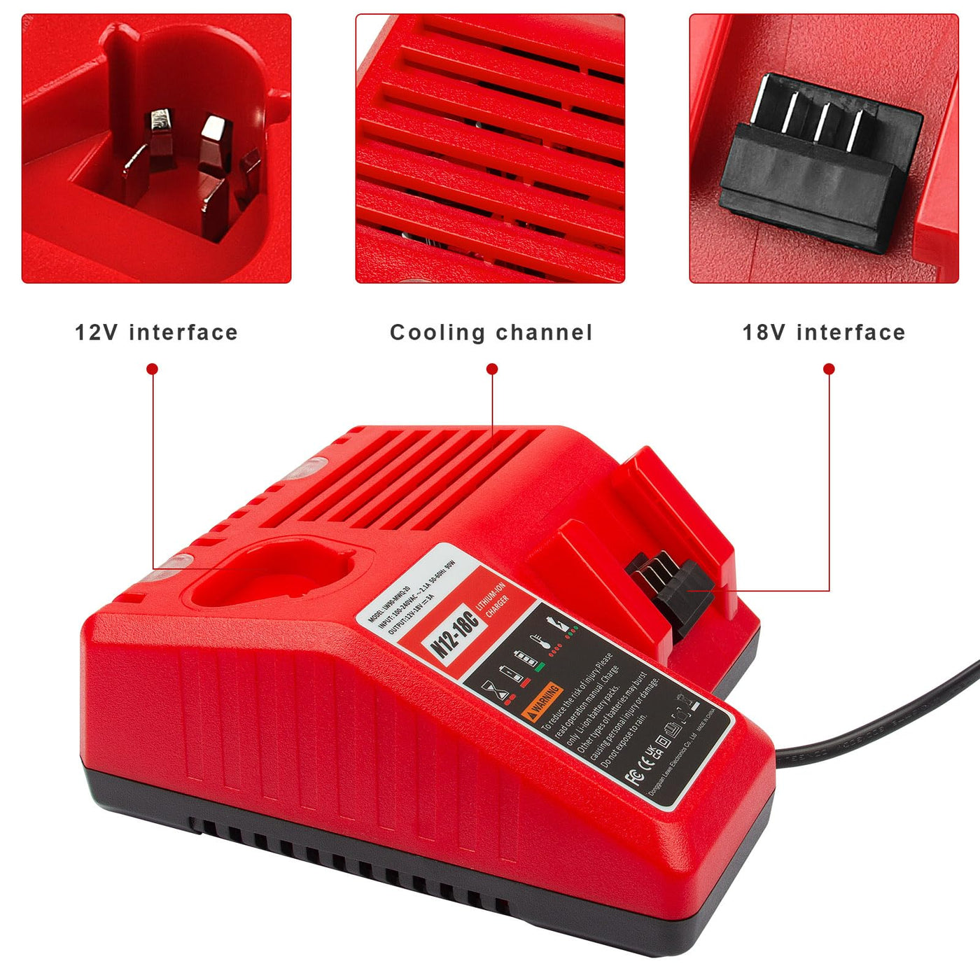 Replacement Rapid Charger For Milwaukee M12 And M18 Charger For 48 59 1812, M14 Xc Lithium Ion Battery 48 11 2420 48 11 2440 48