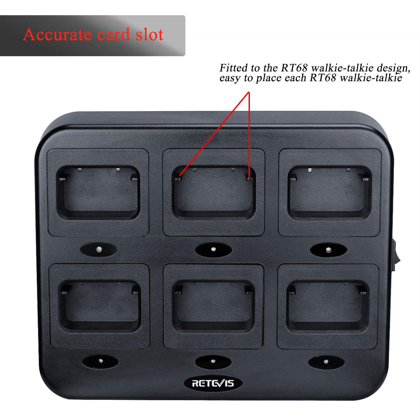 Retevis Six-Way Charger For Retevis Rt68 Walkie Talkie And Battery More Protection For You And Your Walkie Talkie; Six-Way Multi Unit Rapid Gang Charger Makes Your Charging More Efficient; Suitable For Large Groups And Labor-Intensive Activities
