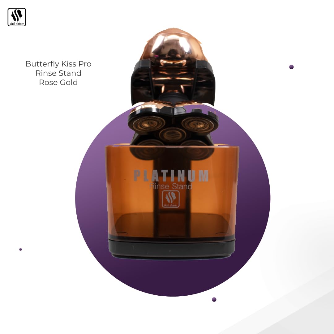 Q: How does the SKULL SHAVER Butterfly platinum rinse stand simplify the cleaning process?A: The SKULL SHAVER Butterfly platinum rinse stand simplifies the cleaning process for all Skull Shaver models by providing a dedicated rinse station that allows for efficient and hassle-free maintenance. Its design ensures that cleaning your shaver becomes a quick and easy task.